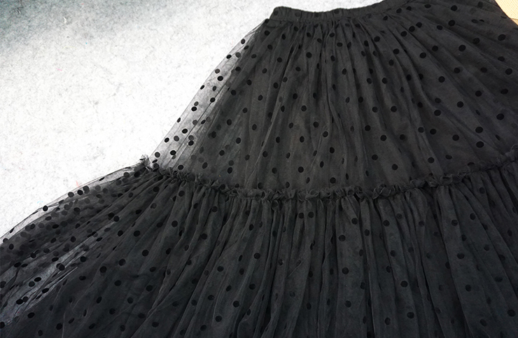 * This maxi dress is made from 1 layers top quality black polka dot pattern tulle layer, layered solid tulle skirt, plus one piece of thick satin lining as inner layer, which let the skirt looks very fairy.