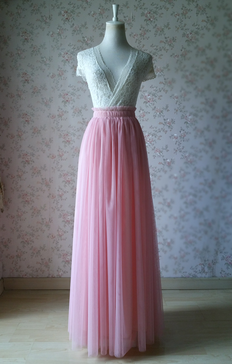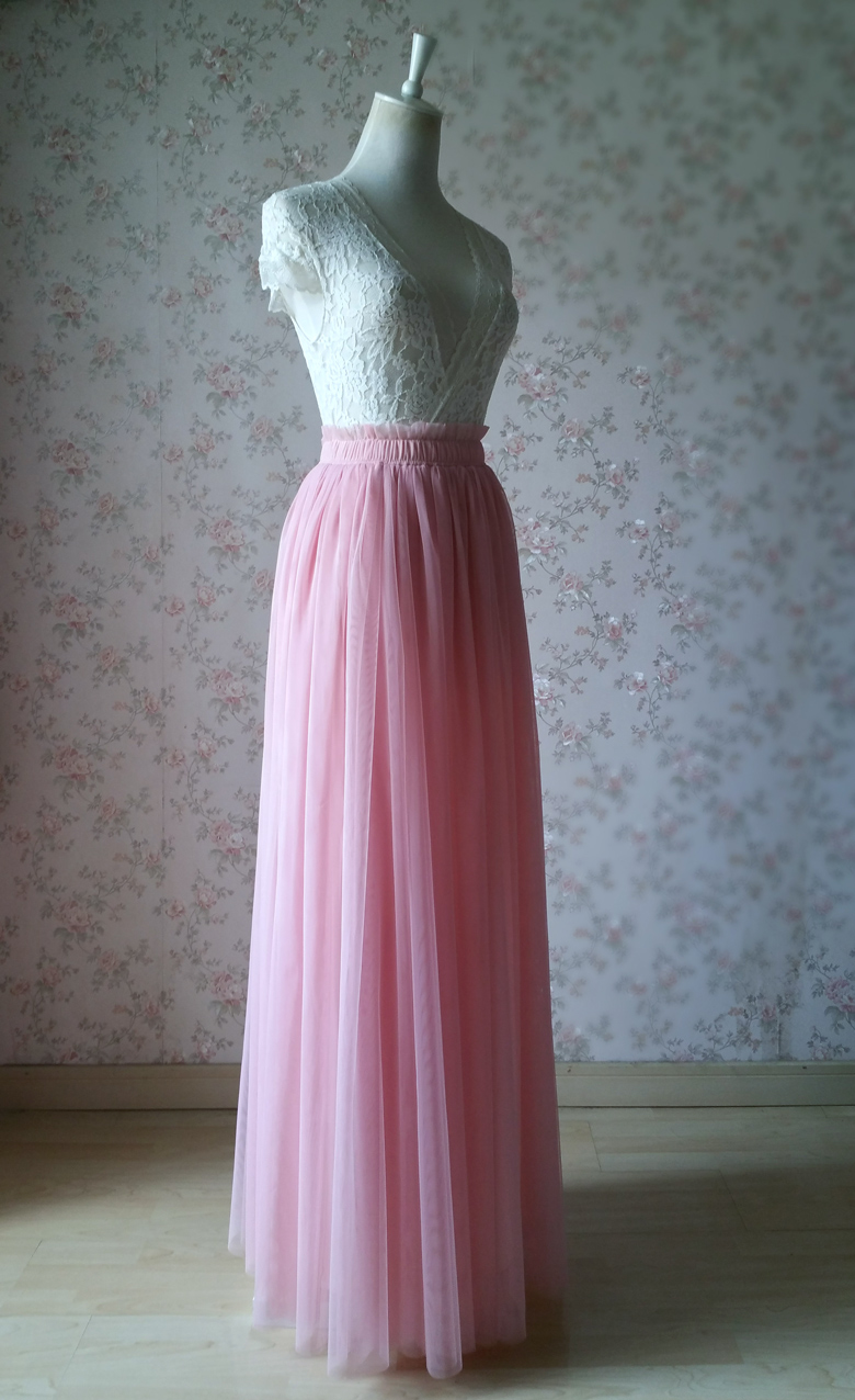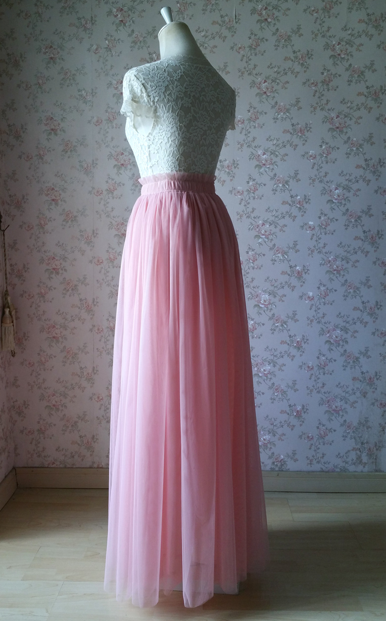 Women BABY PINK Floor Length Tulle Tutu Skirt Light Pink Bridesmaid Tulle Tutu Outfits Wedding Skirt Plus Size