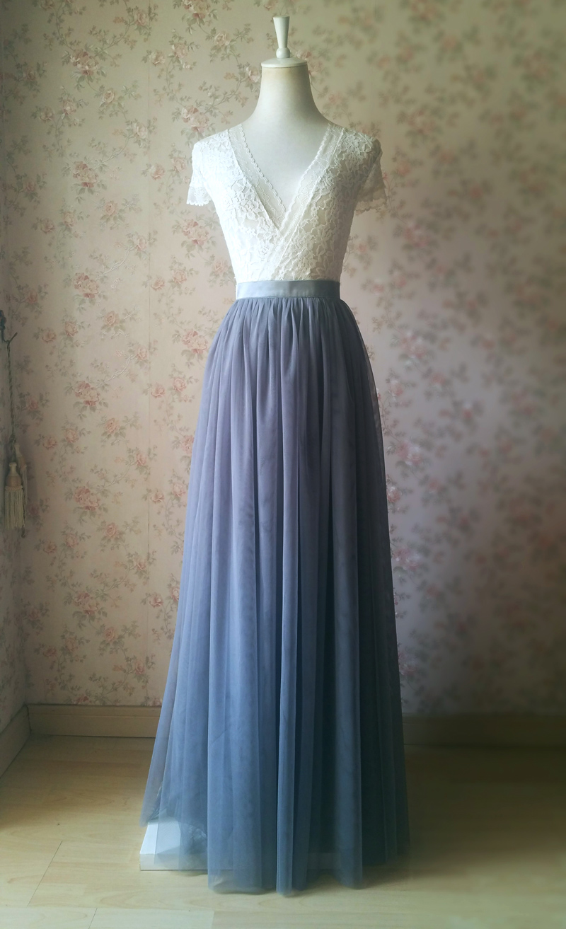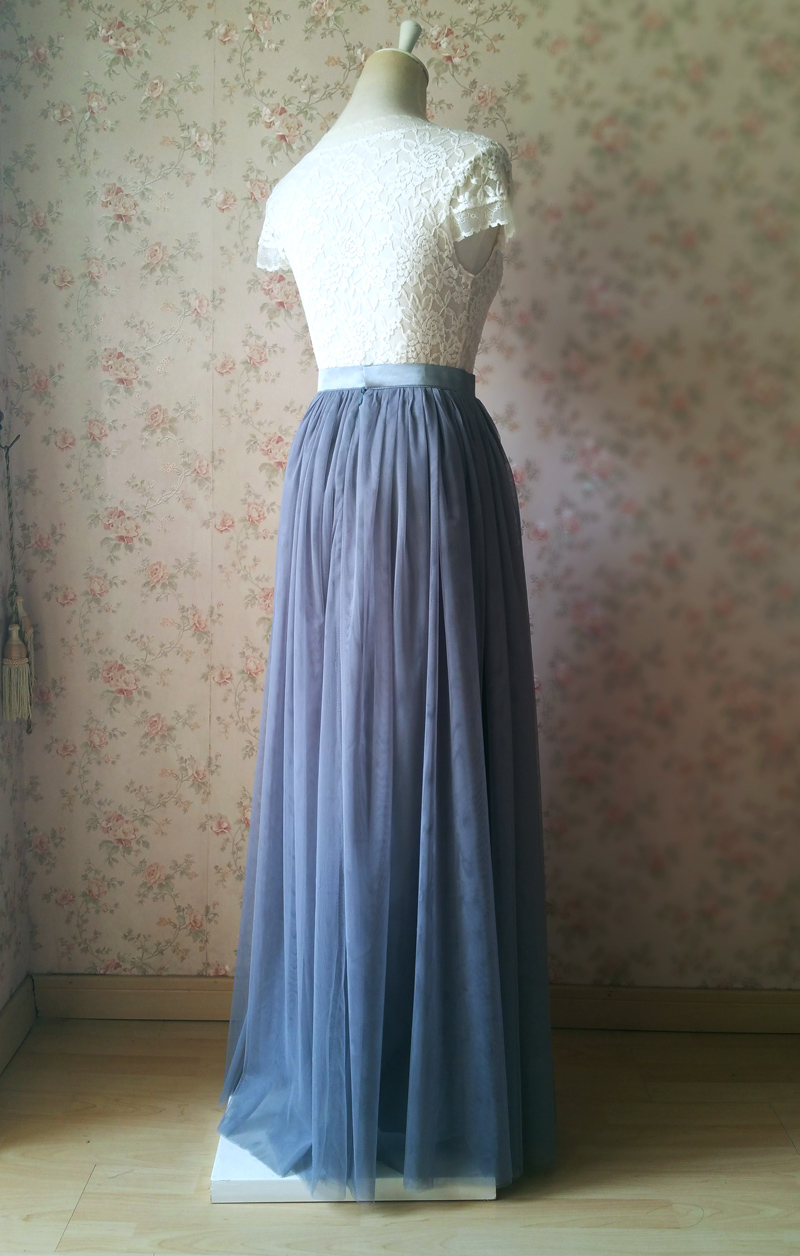 Women Gray Floor Length Tulle Skirt Gray Wedding Maxi Tulle Skirt Gray Bridesmaid Tulle Skirt Plus Size Custom
