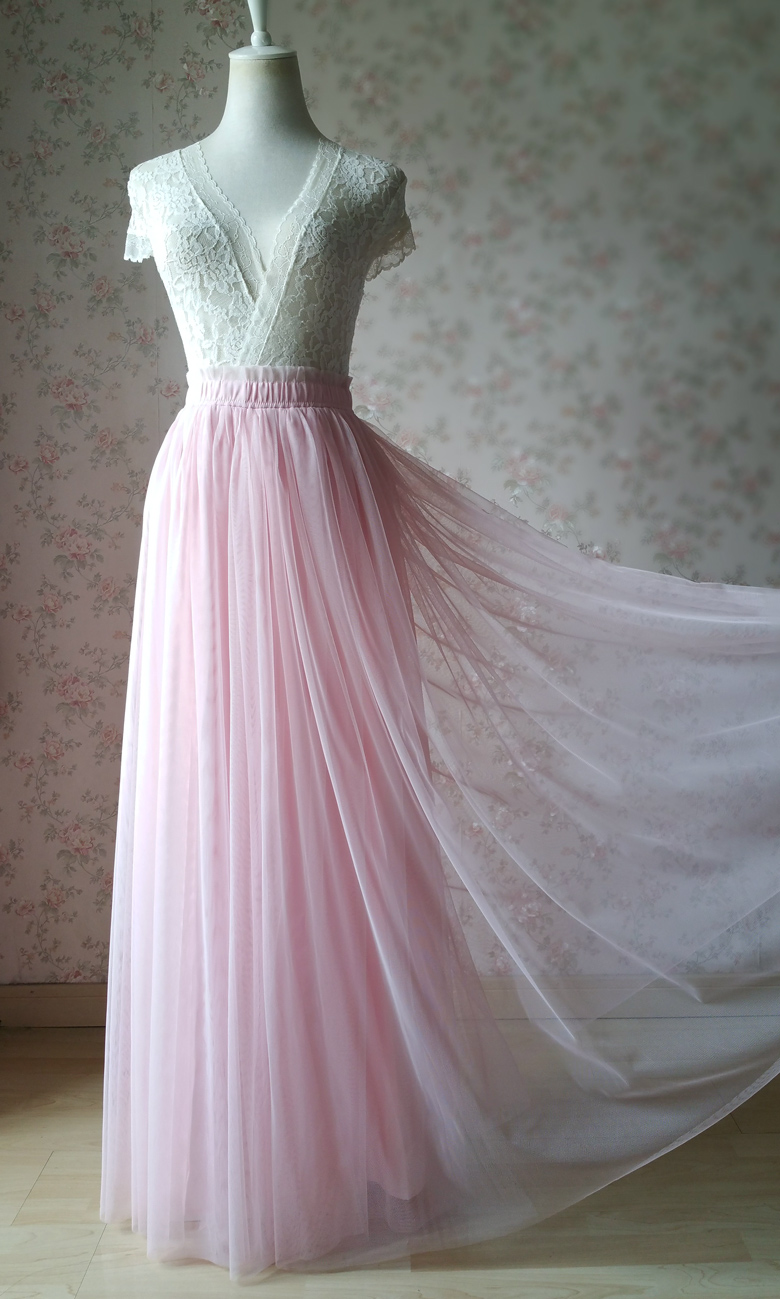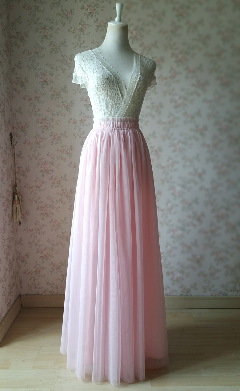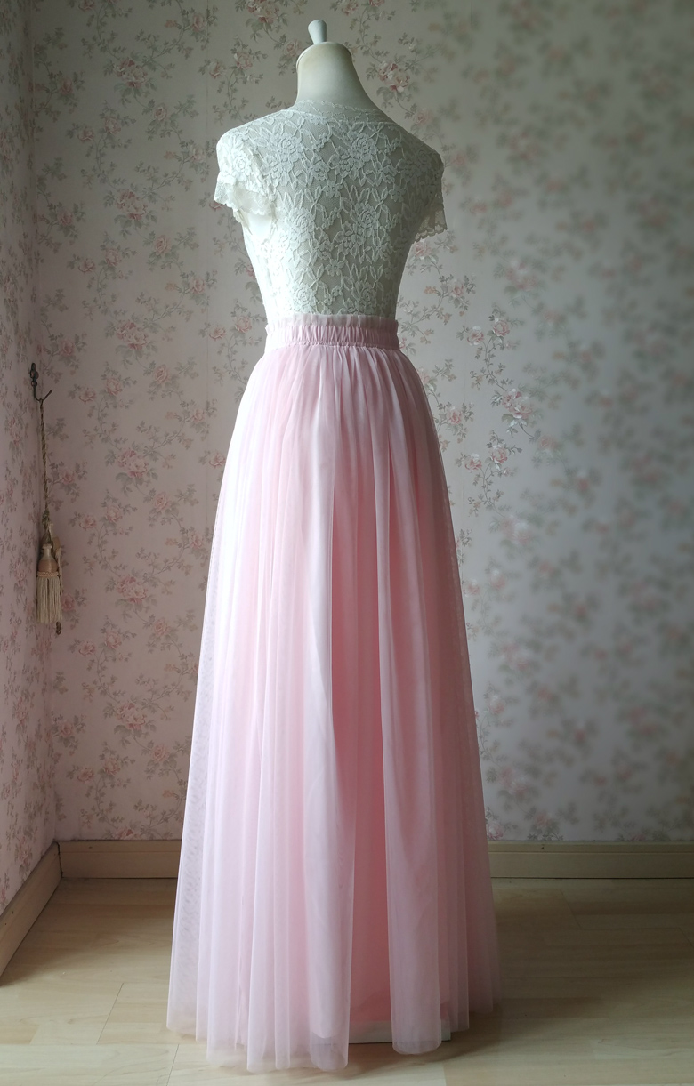 Women Pink Maxi Tulle Skirt High Waisted Pink Wedding Party Tulle Skirt Pink Bridesmaid Skirts Custom Plus Size