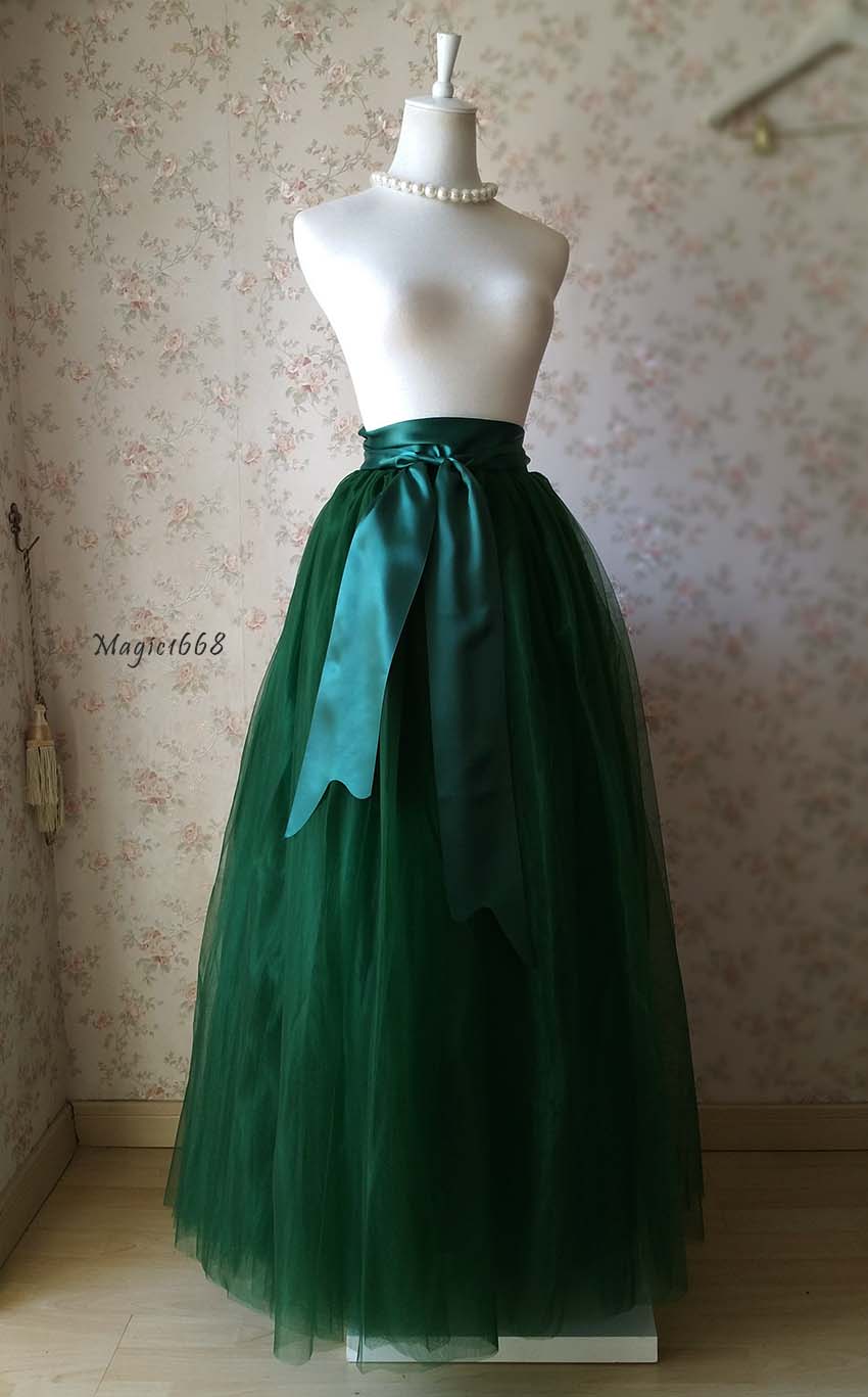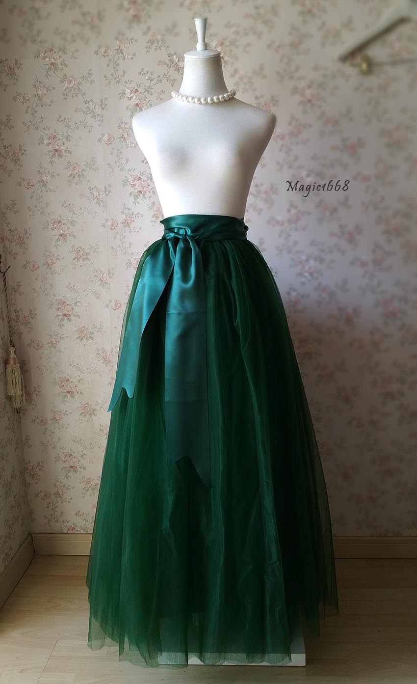Women's Maxi Tulle Skirt Dark Green Tulle Tutu Skirt A Line High Waist Full Tulle Skirt Green Wedding Skirt Outfit Party Prom Skirt, Custom Plus Size available. This is a retro DARK GREEN high waisted floor length maxi tulle skirt in any size, which fit for most of party, events, weddings.