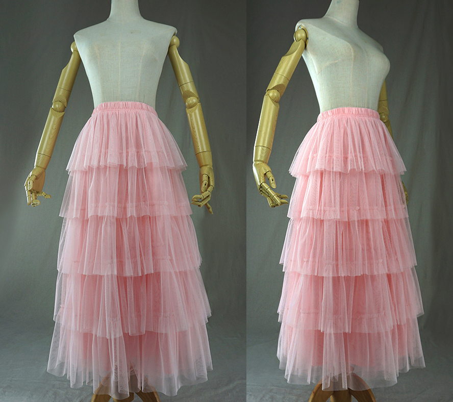 PINK TIERED SKIRT OUTFIT, Women's High Waist LONG TULLE SKIRT, PRINCESS TULLE SKIRT, FULL LENGTH TULLE SKIRT, Party Prom TUTU SKIRT, TULLE MAXI SKIRT, Wedding Bridesmaid Skirts, Plus size Tulle Skirts, High Waisted, Custom size available.