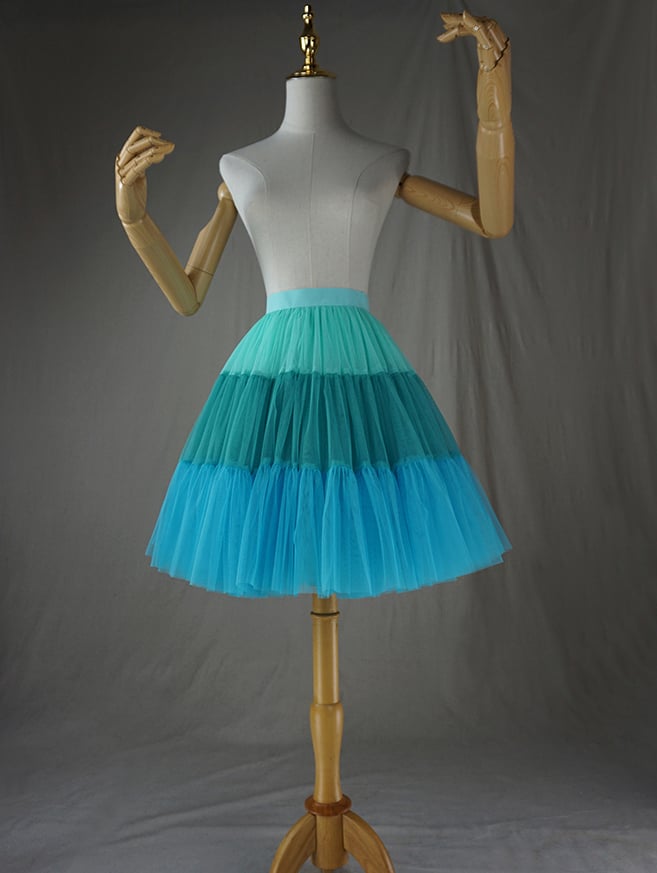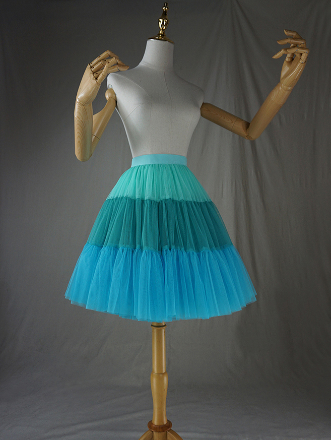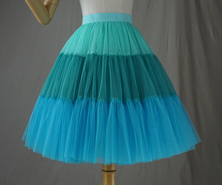 Women Knee Length Puffy Tulle Skirt Mint Green Blue Layered Tulle Skirt A-Line Knee Length Party Skirt Plus Size