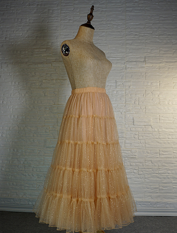 - In order to keep the perfect puffy and flared effects, this skirt is made of two kinds tulle.