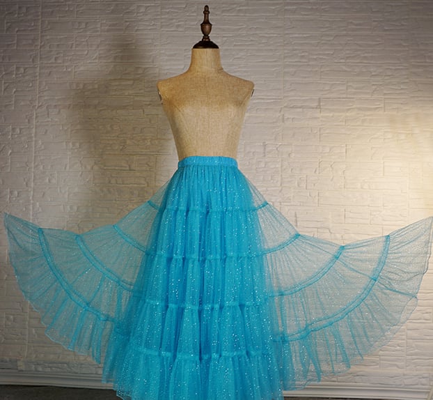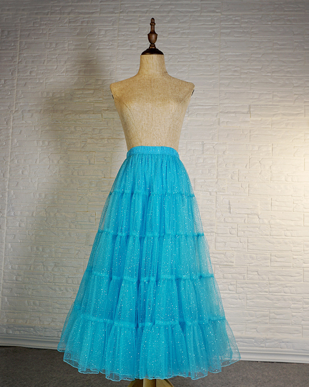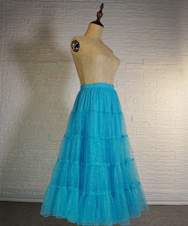 Ocean Blue Maxi Tulle Skirt Outfit Women Sparkle Tulle Skirt Holiday Outfit Evening Skirt A-line Custom Plus Size