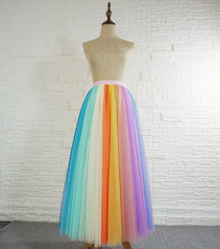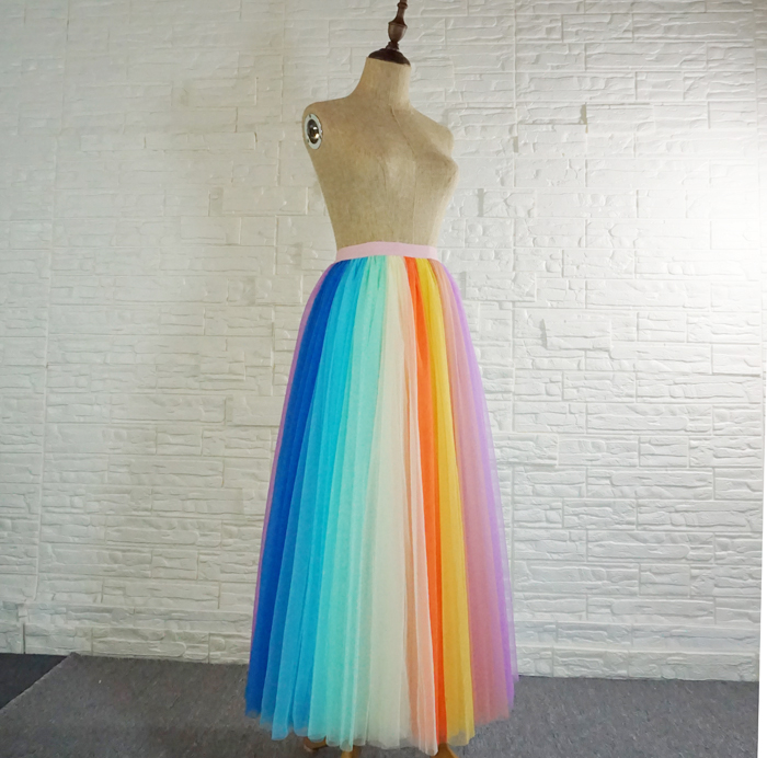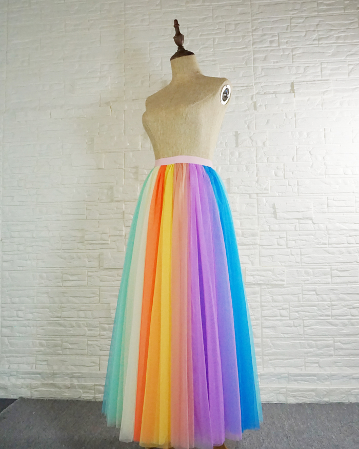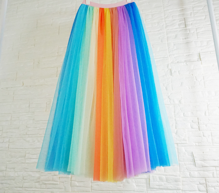 Women Tulle Long Rainbow Skirt