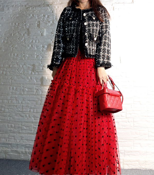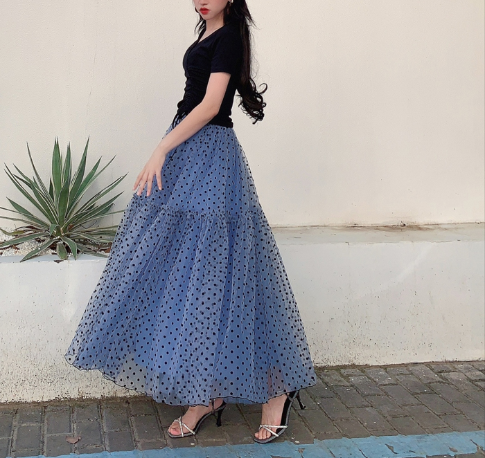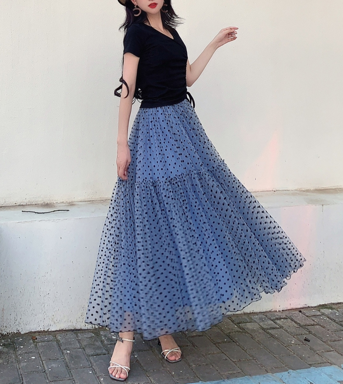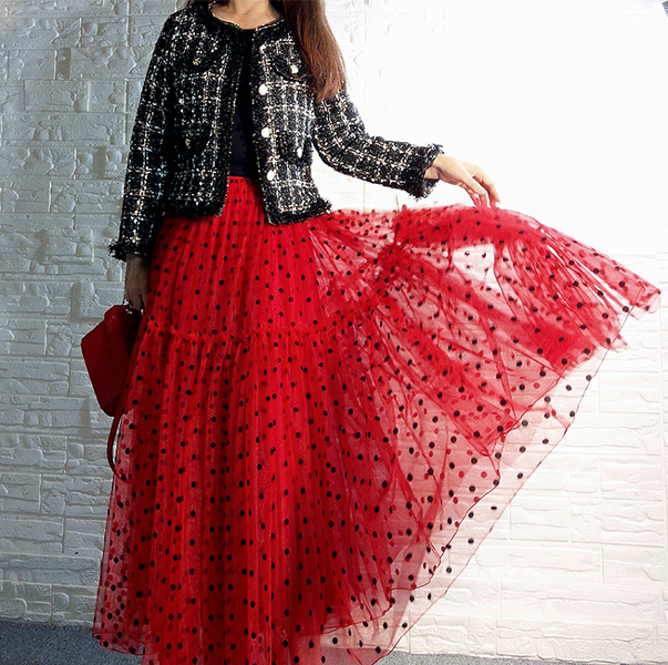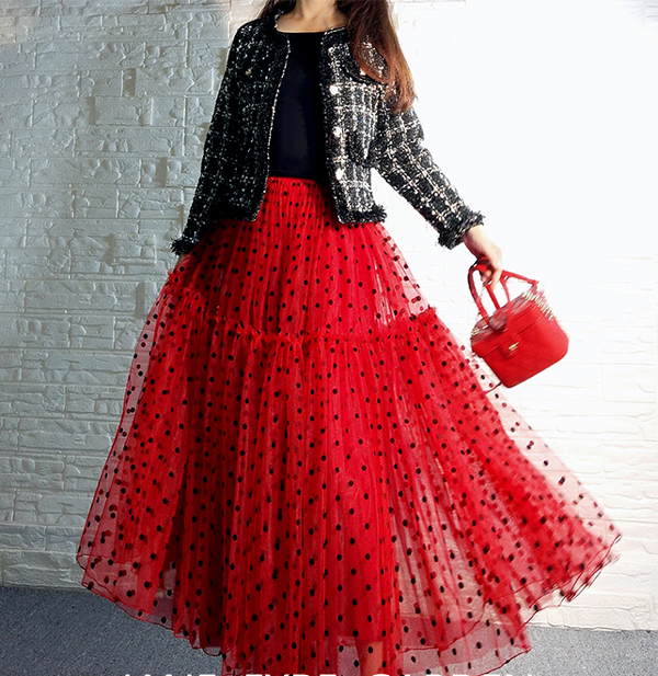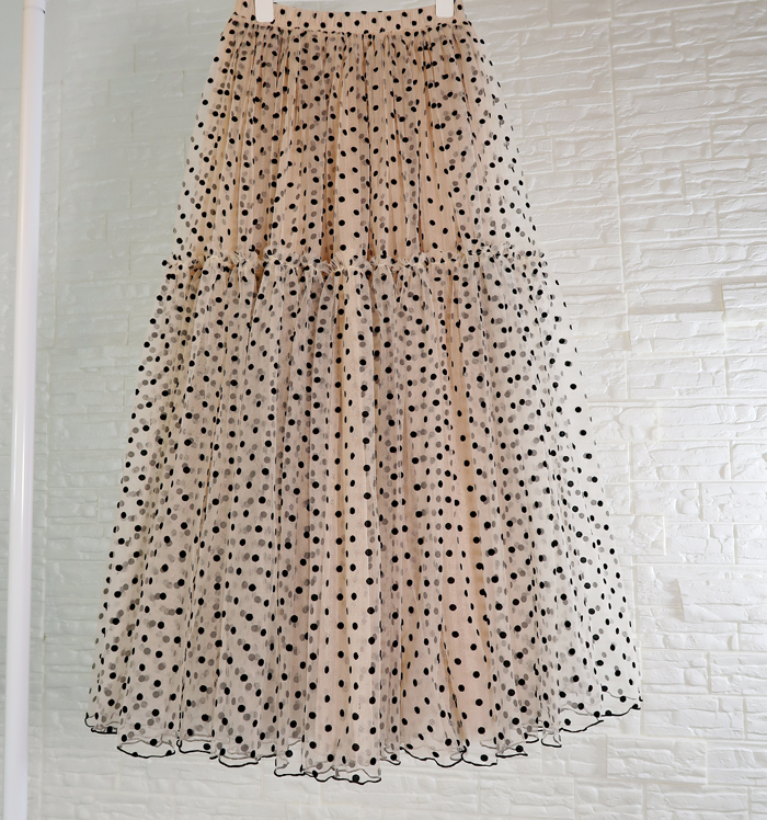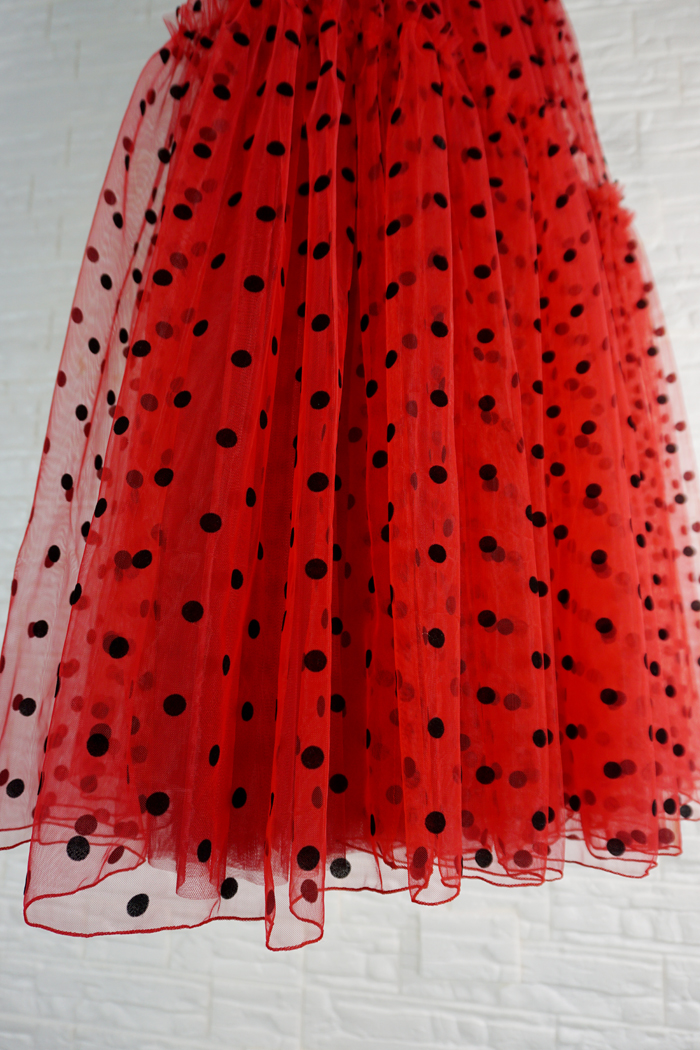 This long tiered tulle skirt is made of top quality polka dot patterned tulle tutu, which is just featured with vintage element, best choices for birthday party, wedding, holiday and other occasions.