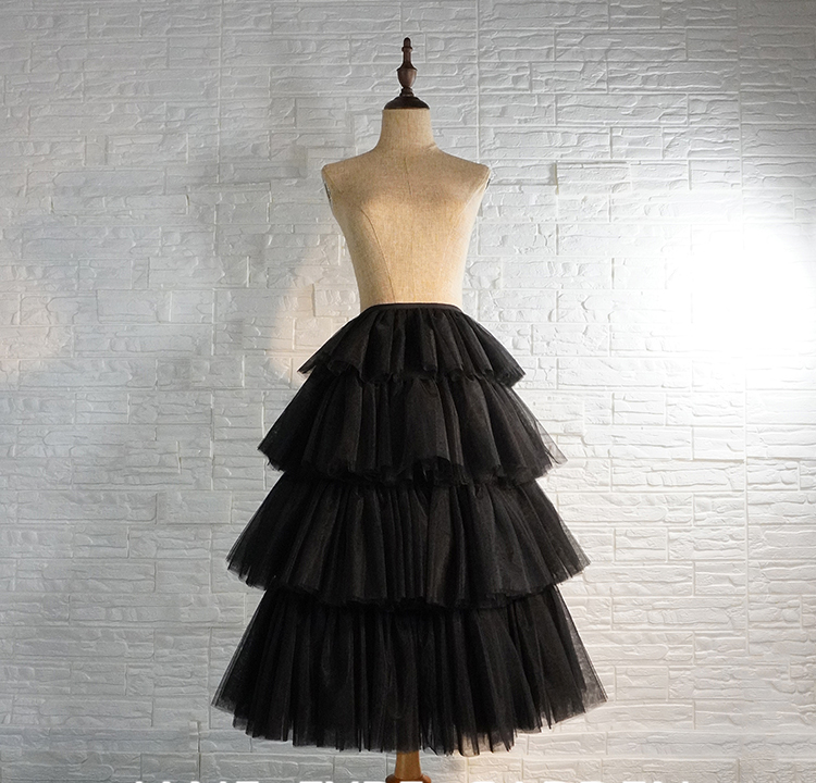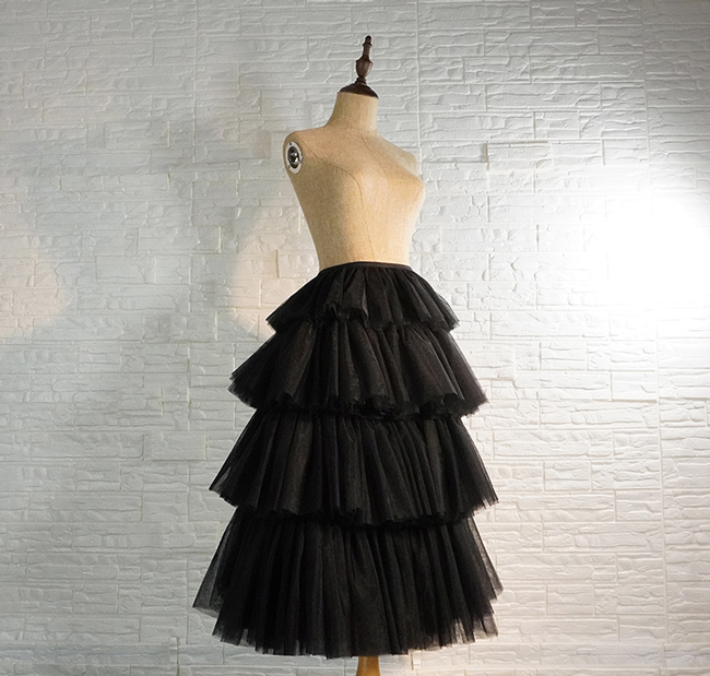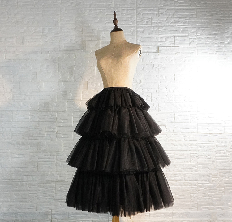 Women Black Layered Tulle Skirt Outfit High Waisted Black Party Skirt Wedding Custom Plus Size