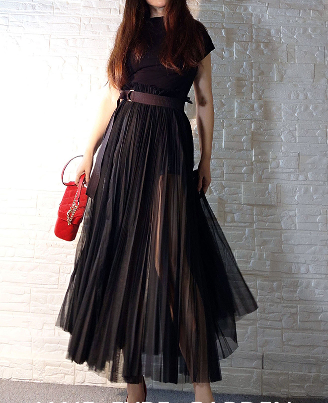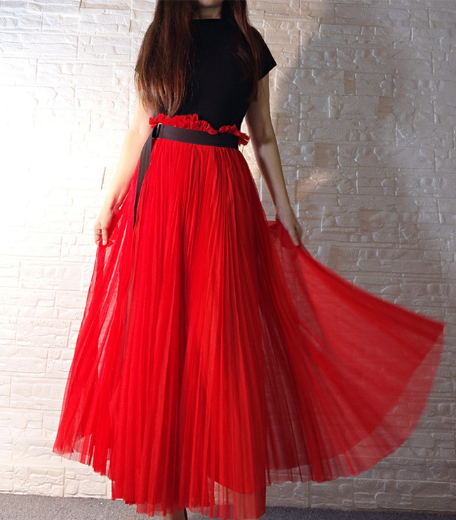WOMEN RED LONG TULLE SKIRT OUTFIT HANDMADE RED ONE SLIT PARTY PLEATED SKIRT HOLIDAY OUTFIT HIGH WAISTED RED WEDDING TULLE SKIRT OUTFIT CUSTOM ANY SIZE BLACK TULLE SKIRT BLACK PARTY OUTFIT