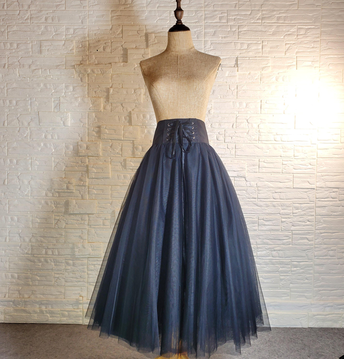 Vintage Inspired Wide High Waisted Tulle Skirt Black A-line Holiday Tulle Skirt Custom Plus Size Black Wedding Outfit