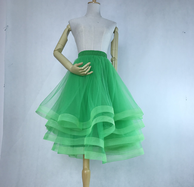 Women Layered Midi Tulle Skirt Wedding Outfit Romantic High Waisted Tulle Midi Skirt Plus Size Green Party Skirt