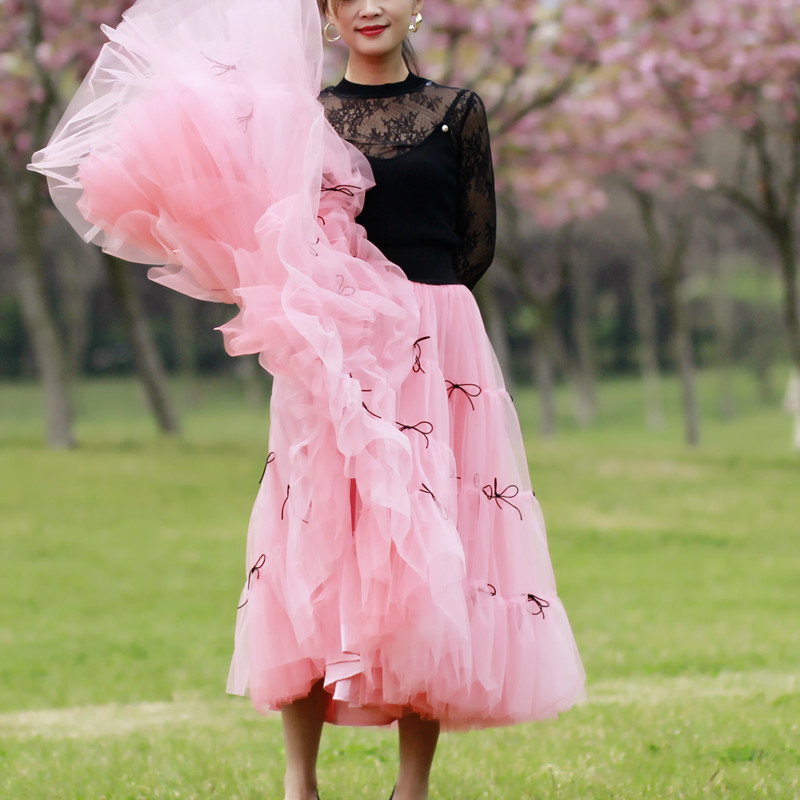 Women Pink Layered Tulle Skirt Outfit High Waisted Bridesmaid Tulle Skirt Wedding Outfit Custom Plus Size