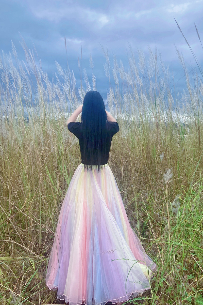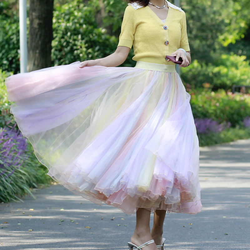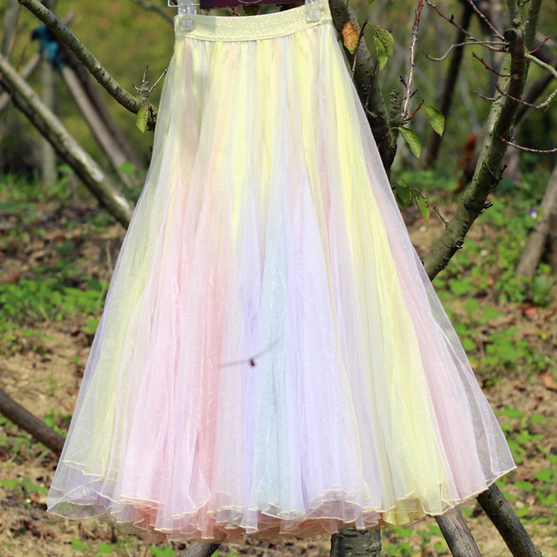Romantic Rainbow Long Tulle Skirt Holiday Outfit Adult Girl Rainbow Tutu Maxi Skirt Custom Plus Size