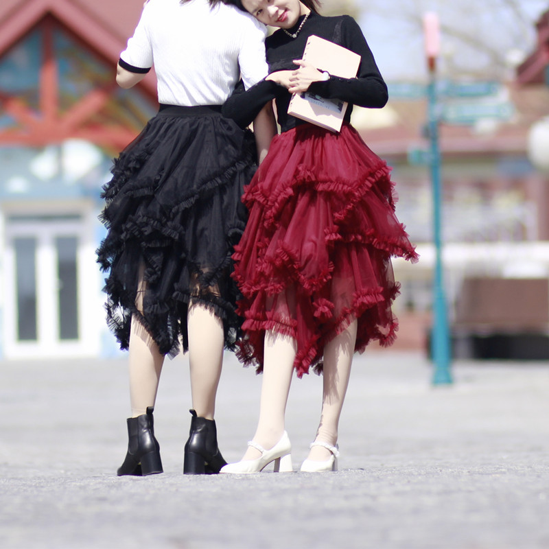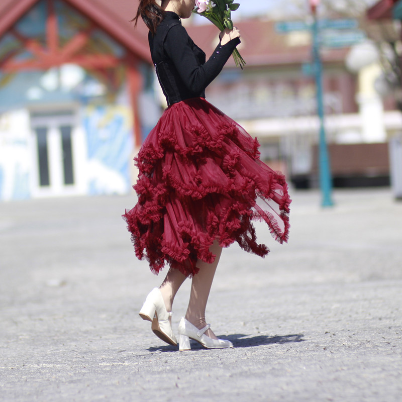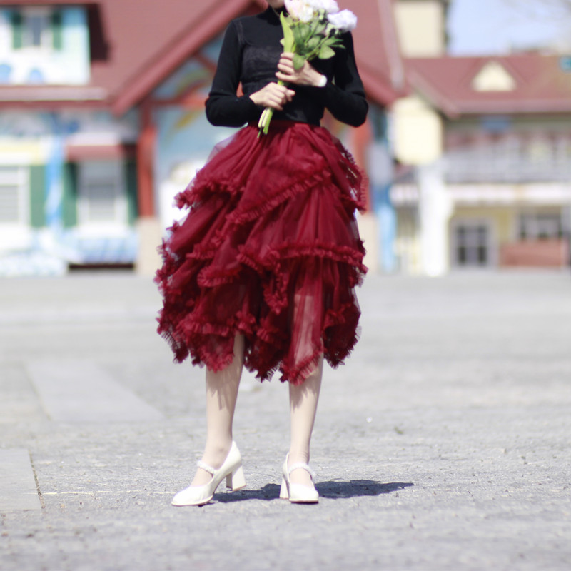 Women Hi-lo Tulle Skirt Holiday Outfit High Waisted Tiered Tulle Skirt Black White Wine Red Tulle Tutu Outfit Custom Romantic Party Tulle Skirt Wedding Outfit, Tiered Mesh Skirt Ballet Skirt. Bridesmaid Tulle Skirt Outfit. High Waisted, A-line, Custom Plus Size available