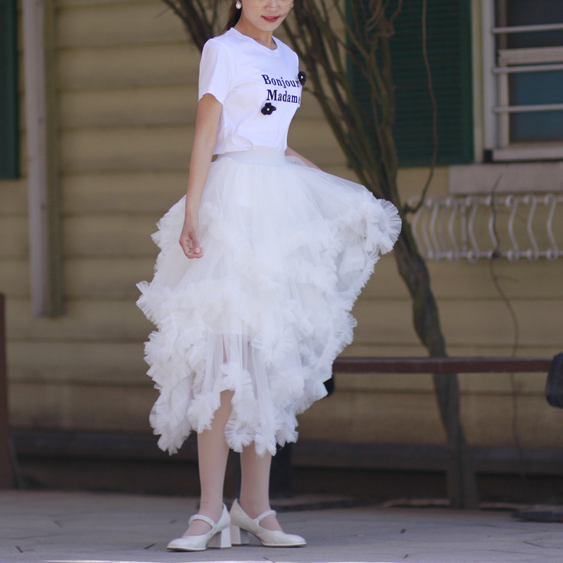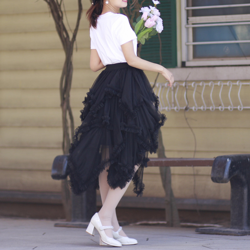 Women Romantic High Low Tiered Tulle Skirt Holiday Outfit Black White Layered Tulle Skirt Wedding Outfit Wedding Photo Prop