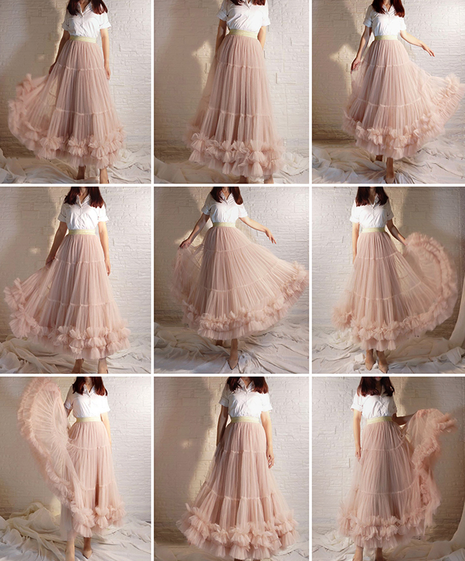 WOMEN LADY LAYERED TULLE SKIRT BLUSH NUDE WEDDING BRIDESMAID TULLE SKIRT HOLIDAY PARTY OUTFIT HIGH WAISTED PUFFY TULLE SKIRT CUSTOM PLUS SIZE LAYERED TULLE SKIRT DANCE SKIRT