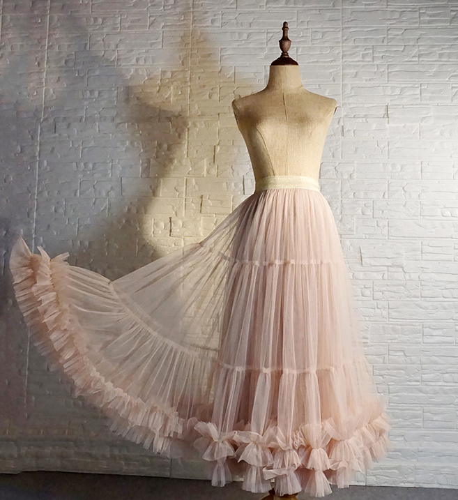Women BLUSH NUDE Layered Tulle Skirt Plus Size A-line Midi Tulle Skirt Bridesmaid Tulle Skirt Wedding Party Outfit