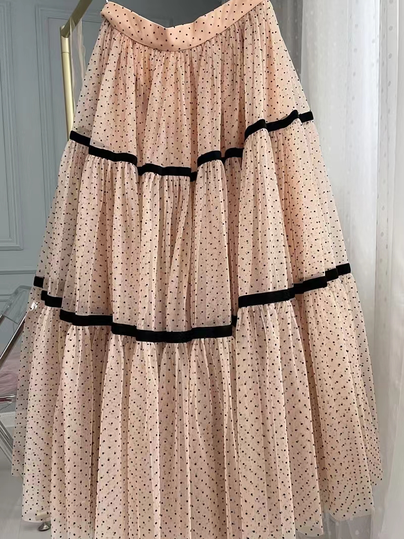 Women Polka Dot Layered Tulle Skirt Vintage Inspired Holiday Tulle Skirt Layered Dot Tutu Skirt Custom Plus Size