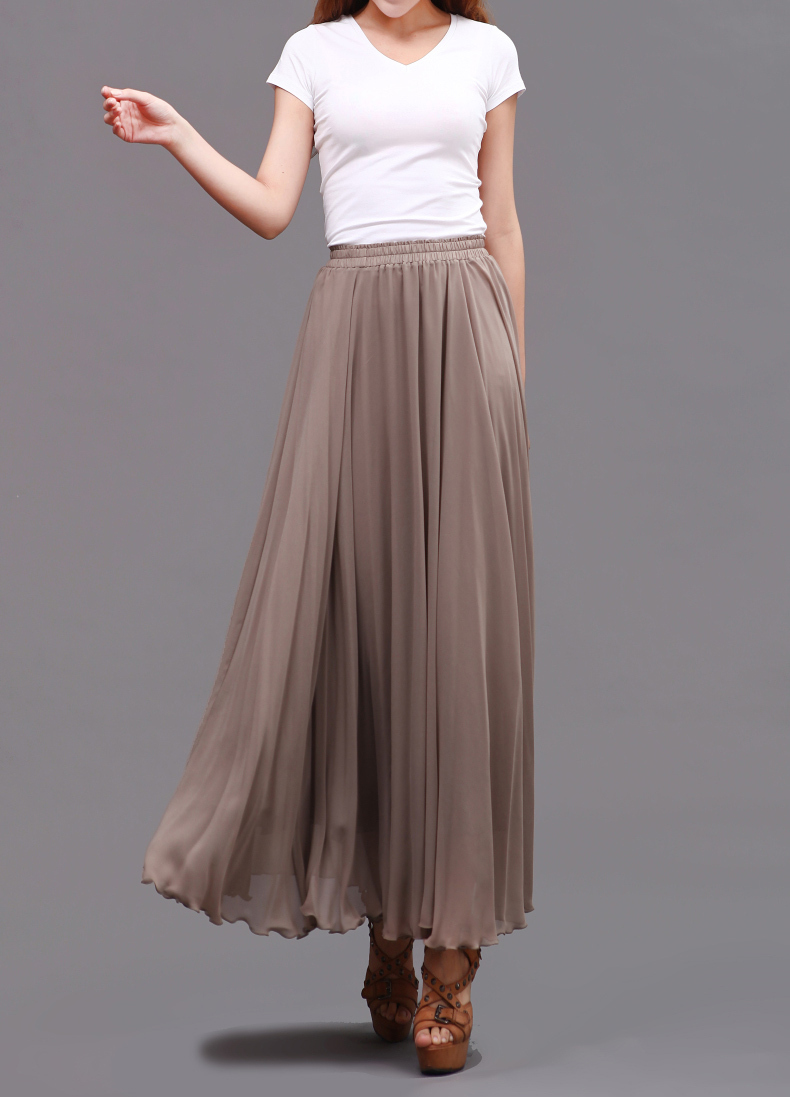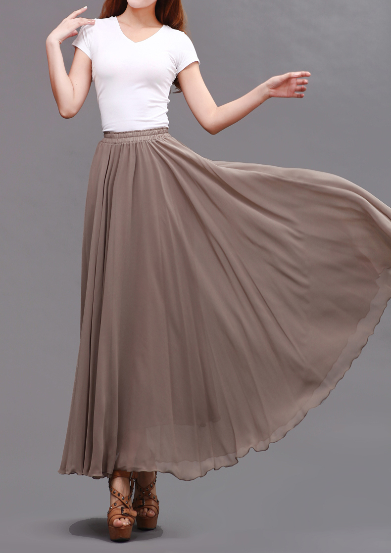 This is very flowing maxi Skirt with double-layered chiffon fabric. The elastic waist easily fits different figures. In wind, bring people relax and romantic feeling. When you walks, this skirt also quiet sways, I think you will love it when you wear it. Don't miss it!
