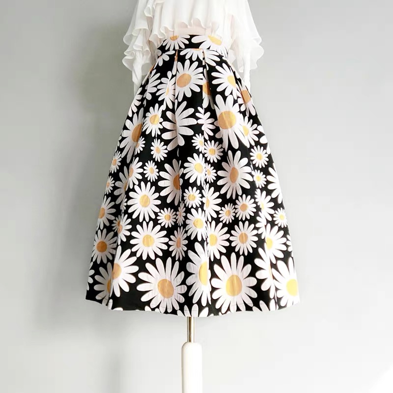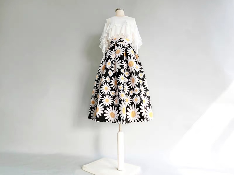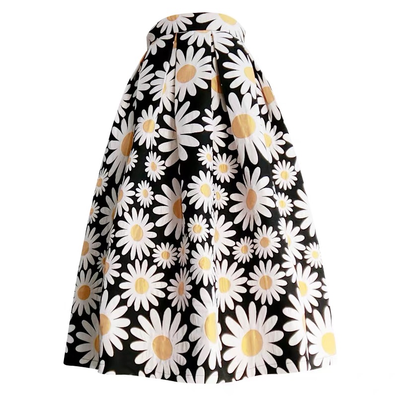 Women Sun Flower Midi Pleated Skirt Outfit High Waisted Woolen Holiday Skirt Outfit Plus Size Midi Formal Skirt Outfit