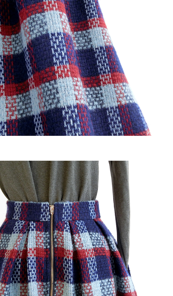 1) Material: Wool blend plaid tartan
