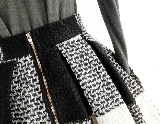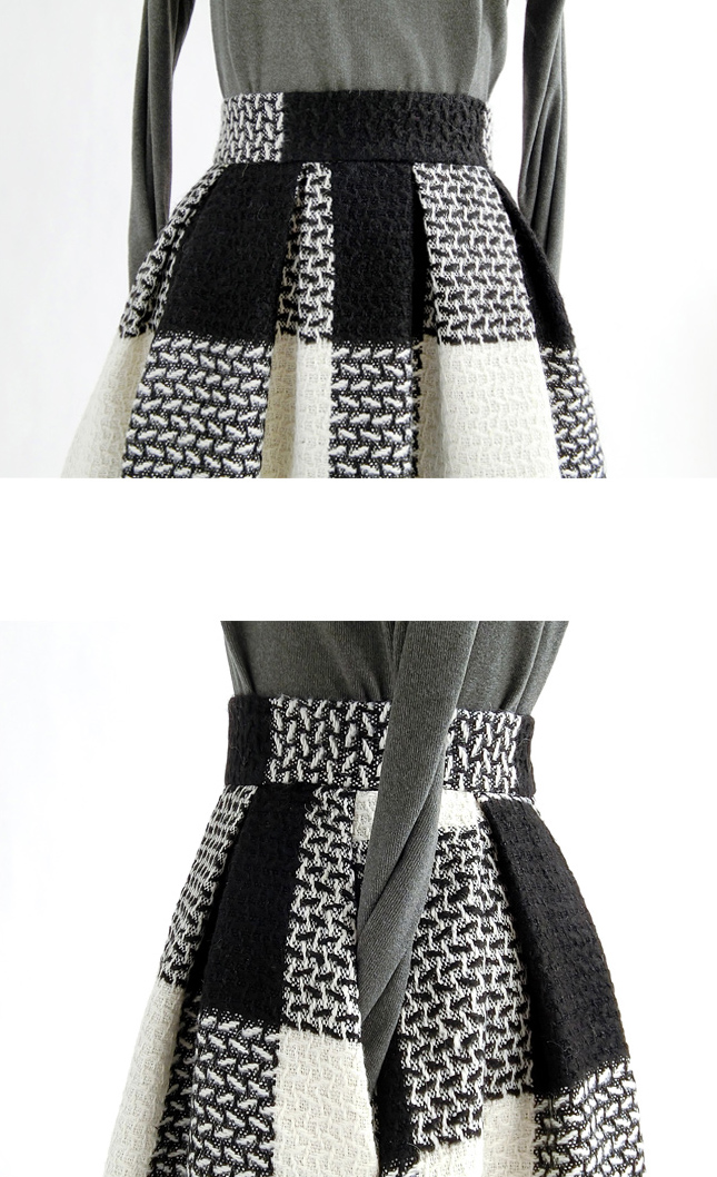 * High waist / full pleated. Actually this skirt is needed much more cloth than usual skirt.