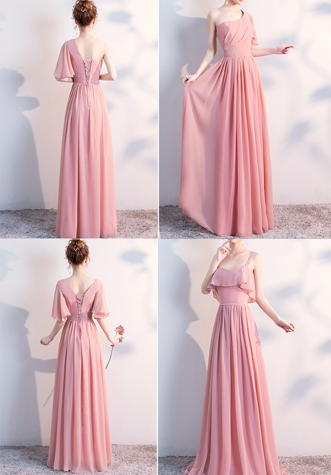 Full Chiffon Bridesmaid Dress Gray Chiffon Wedding Bridesmaid Maxi Dress