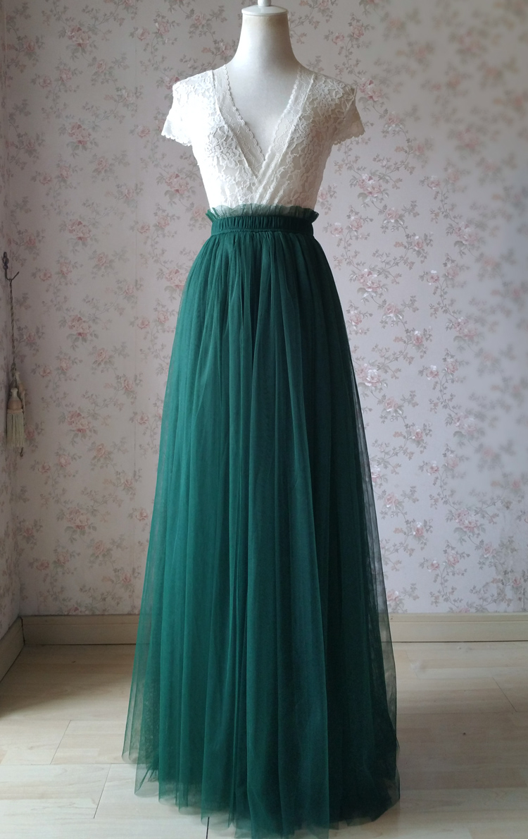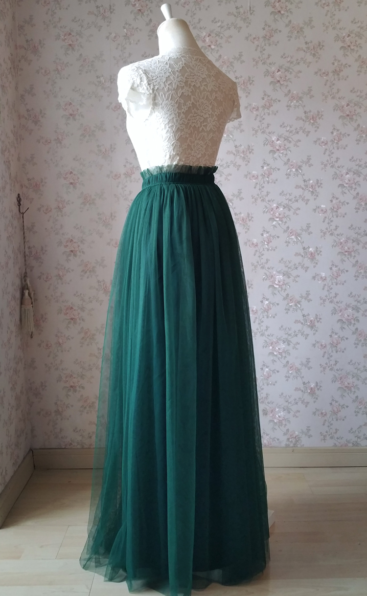Dark Green Tulle Maxi Skirt, Wedding Bridesmaid Tulle Outfits