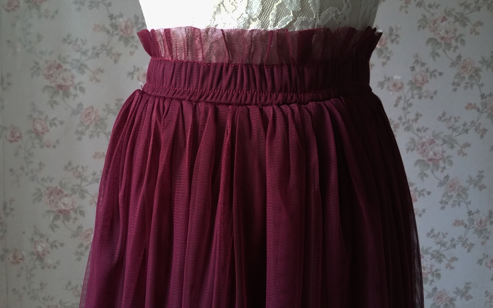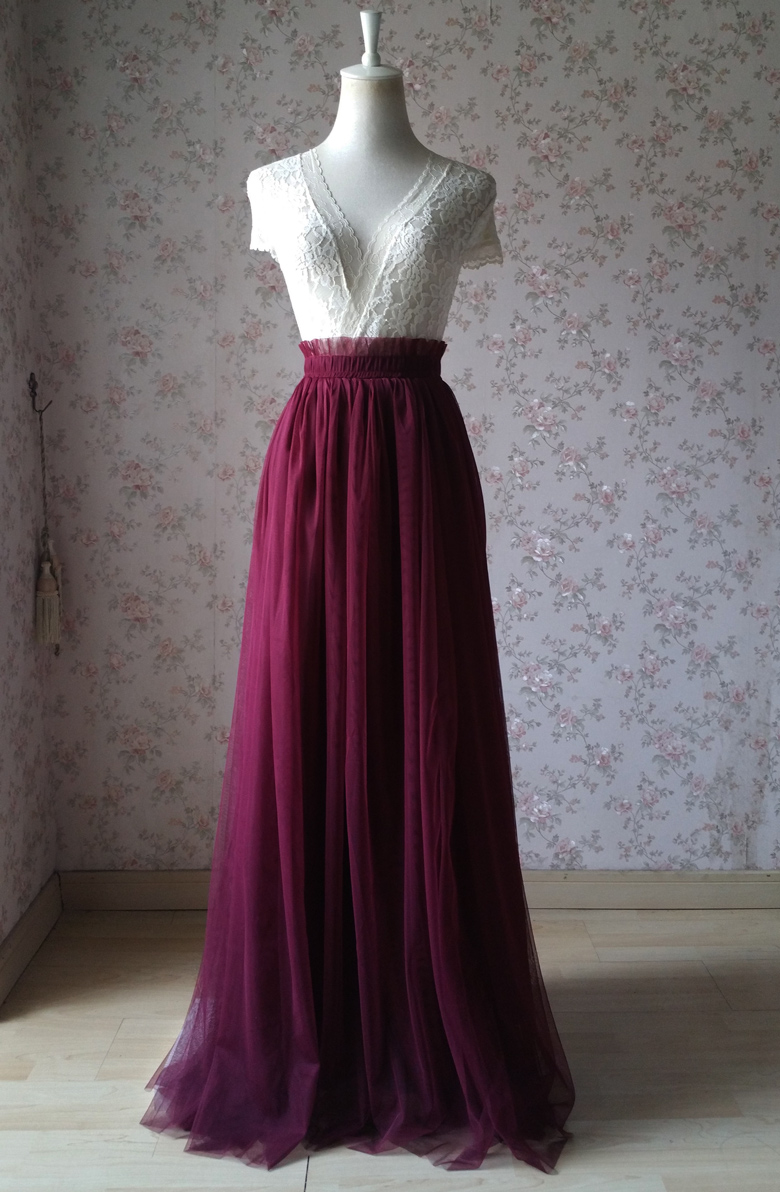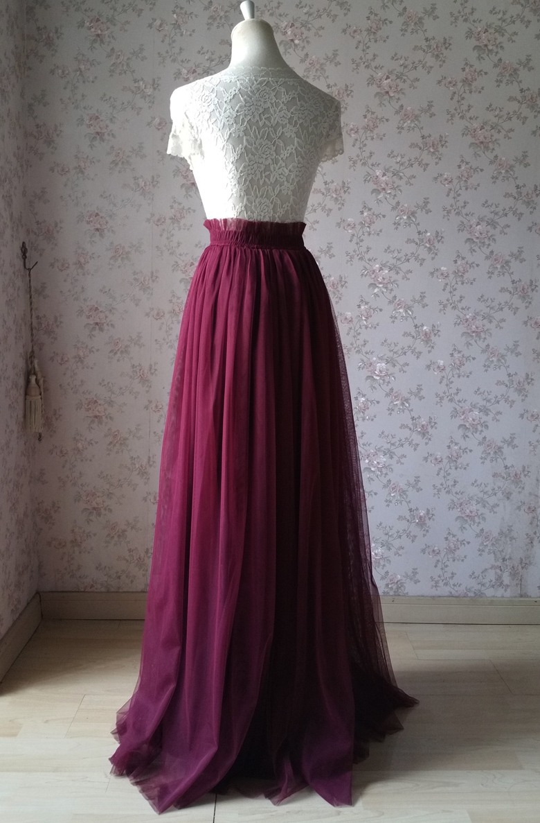 Women Burgundy Wine Red Tulle Skirt Burgundy Wedding Maxi Skirt Bridesmaid Tulle Skirt High Waist Plus Size
