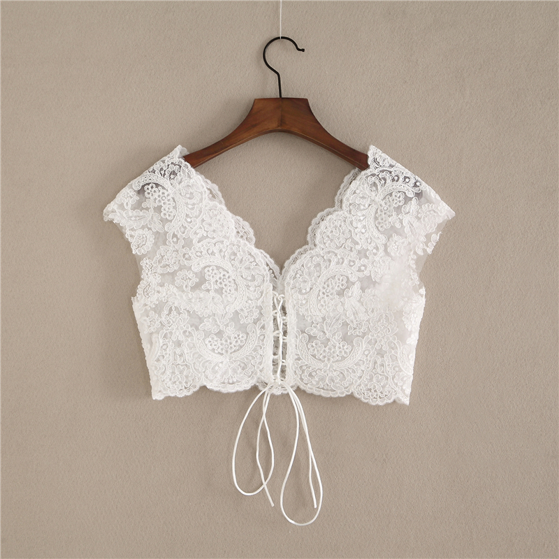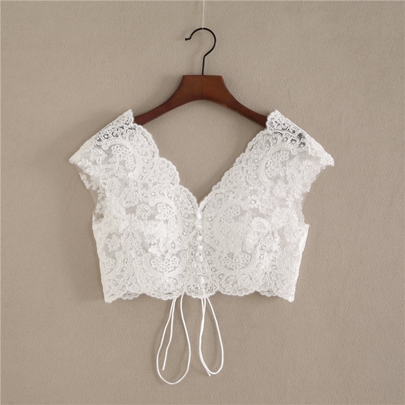 White Off Shoulder V-Neck Sleeveless Lace Crop Tops Summer Wedding Bridal Crop Tops Plus Size