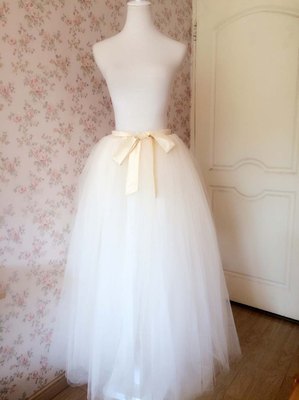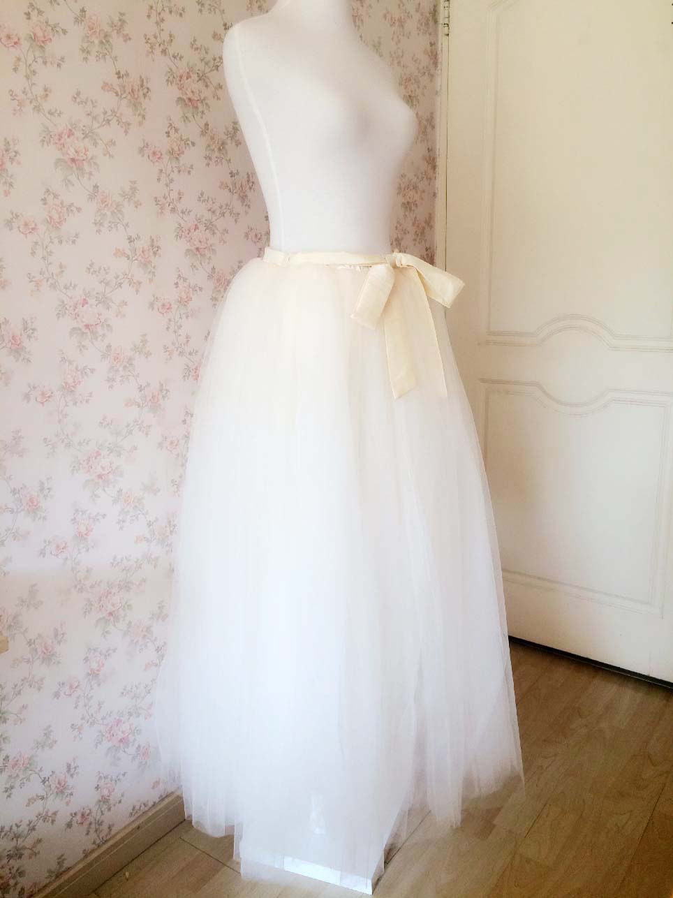 IVORY WHITE Full Length Tulle Skirt Ivory Wedding Bridal Tulle Skirts High Waist Plus Size Tulle Tutu Skirt