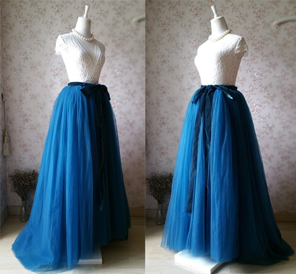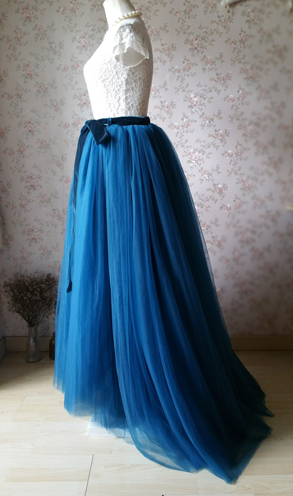 Peacock Blue Maxi Tulle Skirt Women Ruffle Maxi Tulle Tutu Skirts Peacock Blue Wedding Skirt Outfit Bridal Skirt Wedding Photo Tulle Skirt