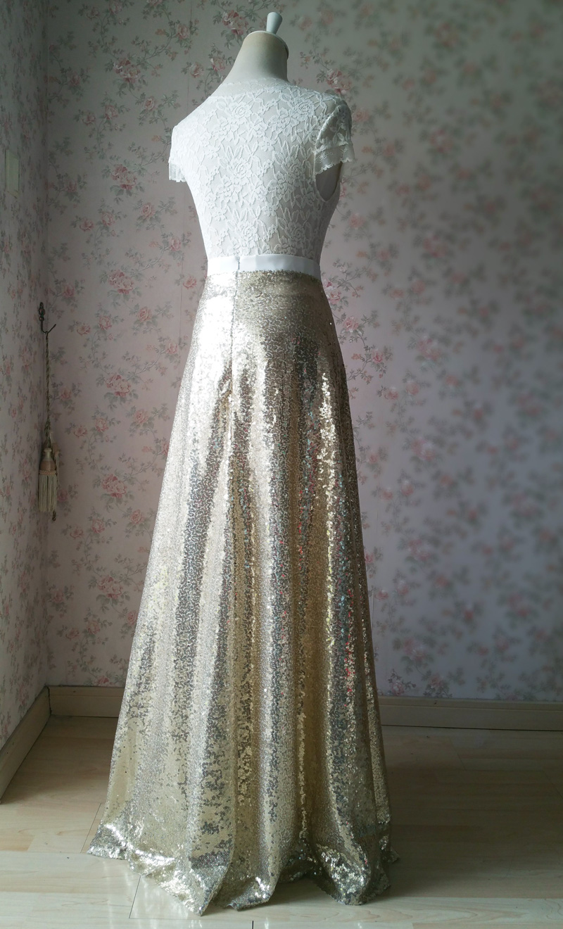 Wedding Gold Sequined Skirt Maxi Golden Skirt Outfit Wedding Bridesmaid Outfits