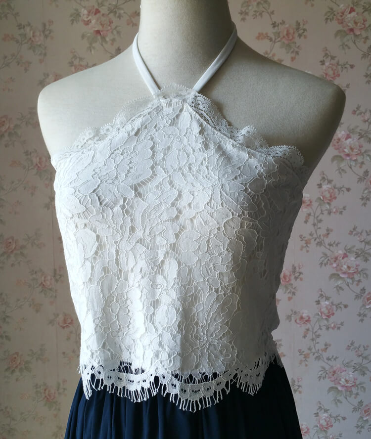 - Lace: Default type E halter Neck. All the types are available. Please add the type number in the note if you need to order other lace top.