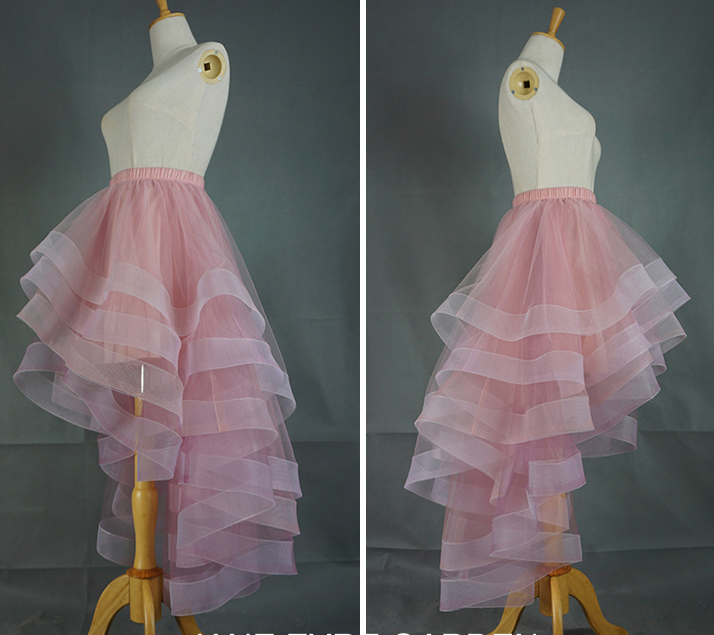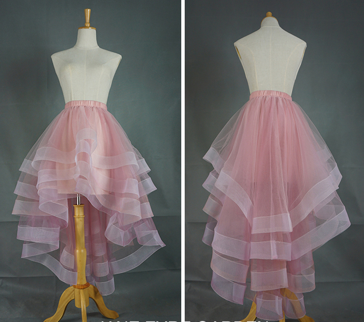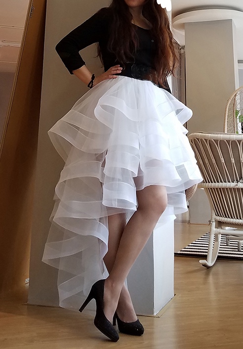 White High Low Wedding Tulle Skirt Holiday Outfit High Waisted Layered Tulle Skirt Romantic Prom Skirt Custom Plus Size