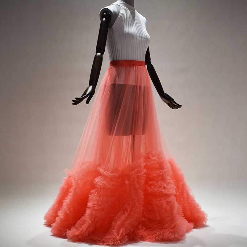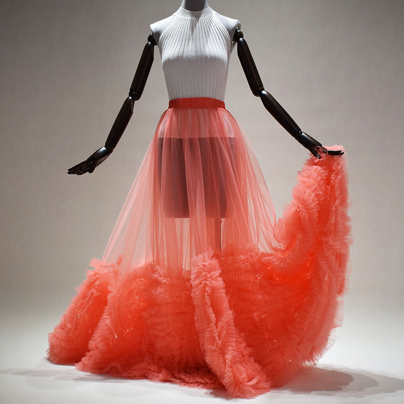 Women Peach Pink Tulle Maxi Skirt Luxury Style High Waisted Wedding Photo Tulle Skirt Plus Size Bridal Outfit