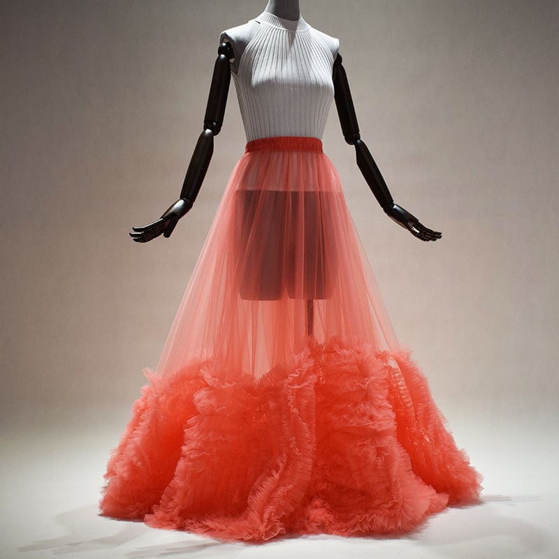 Peach Pink Wedding Tulle Skirt High Waisted Maxi Skirt Full Length Wedding Outfit Evening Skirt Wedding Photo Prop Custom Plus Size Tulle Skirt, Peach pink, Black and white available.