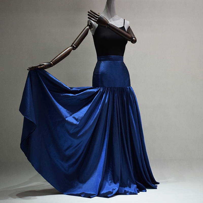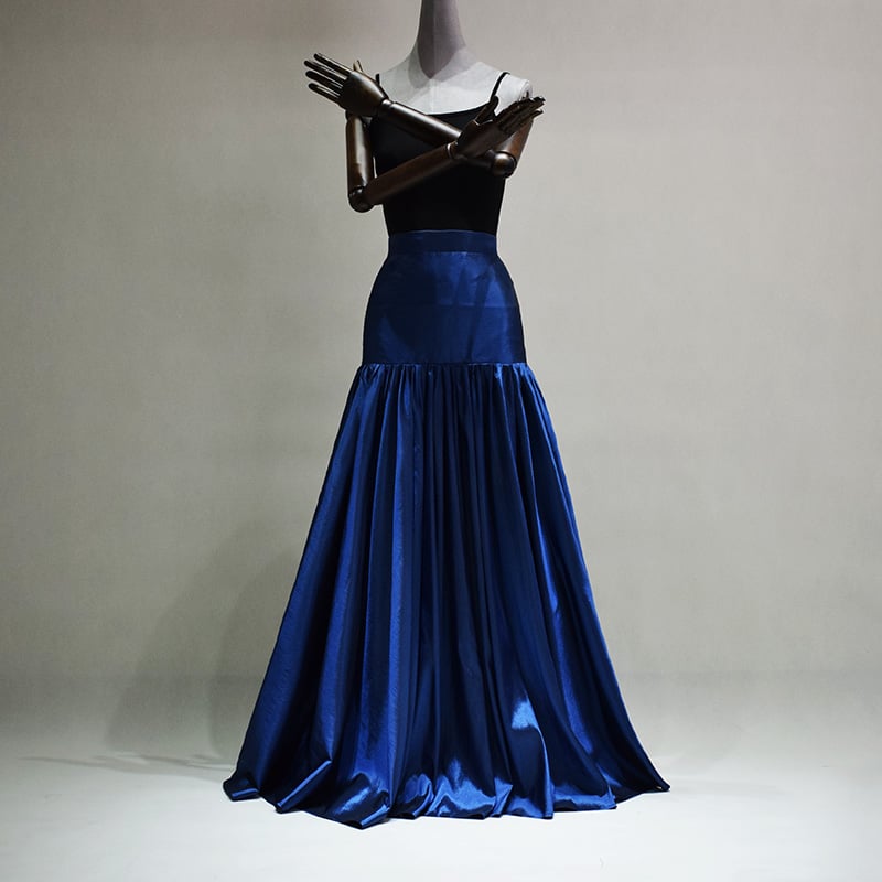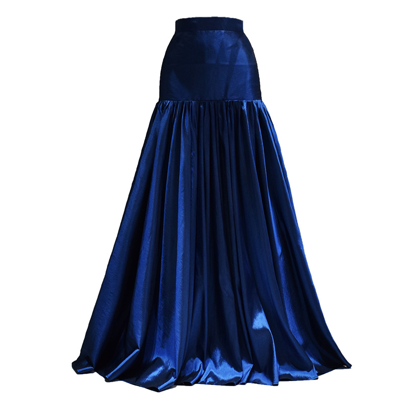 Women Navy Party Maxi Skirt Full Pleated Maxi Taffeta Skirt Holiday Outfit Navy Blue Evening Skirt Plus Size