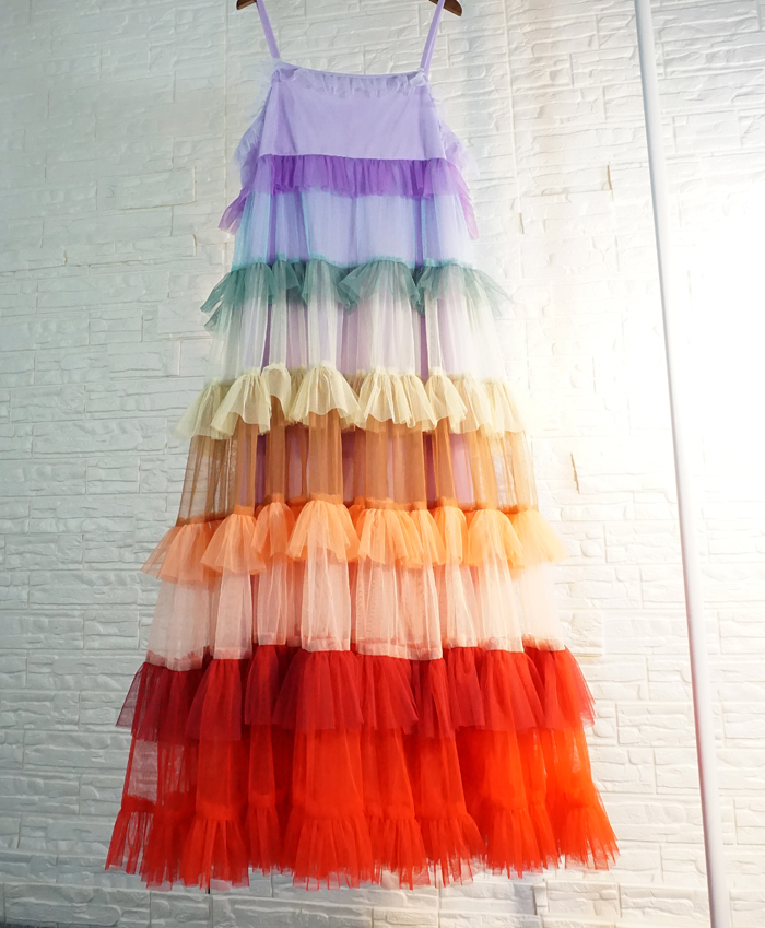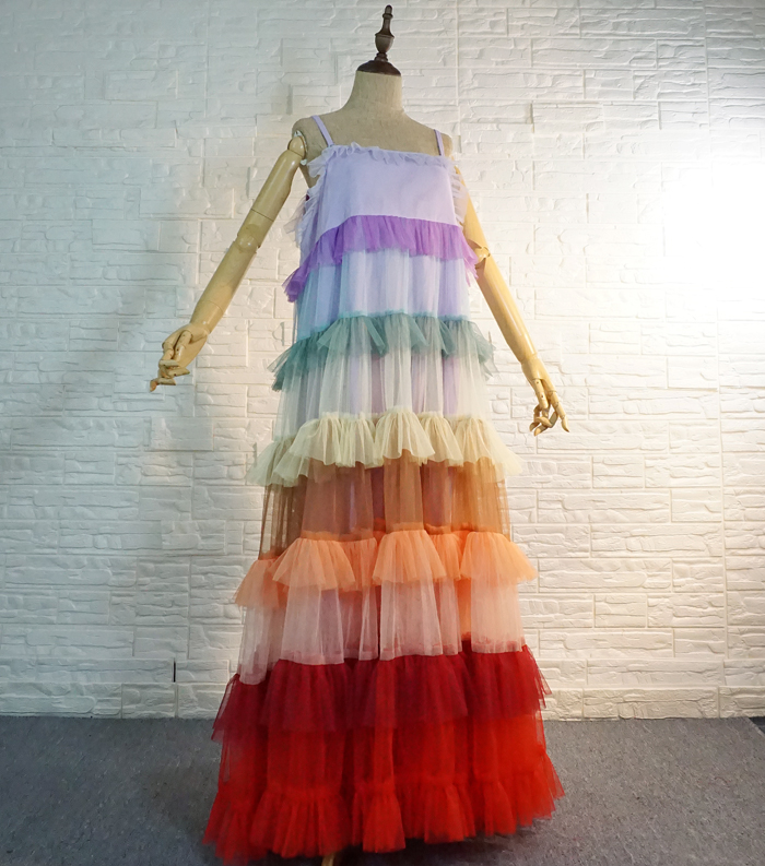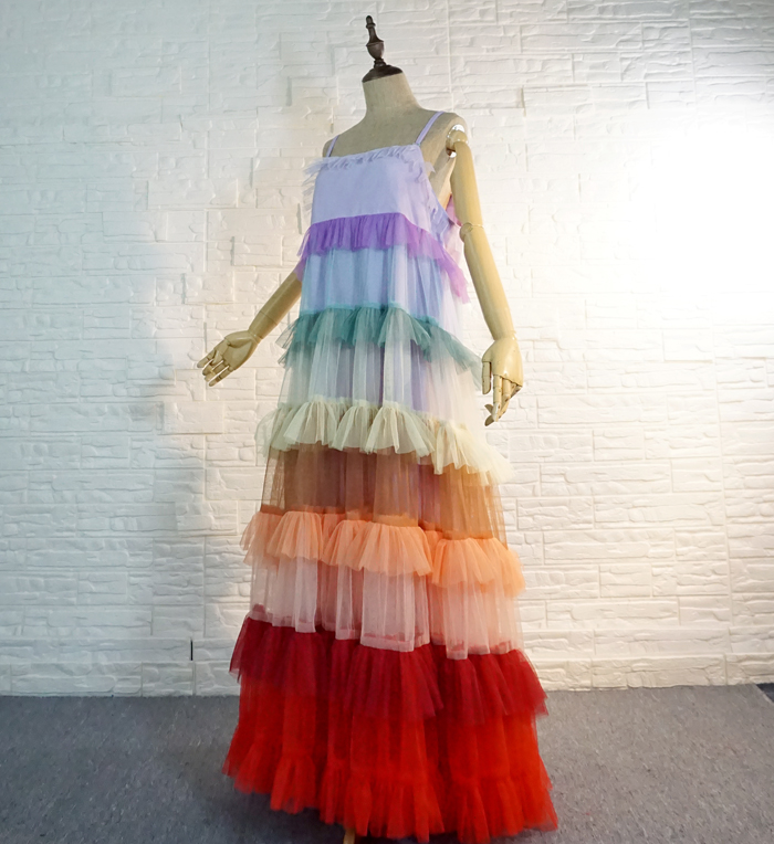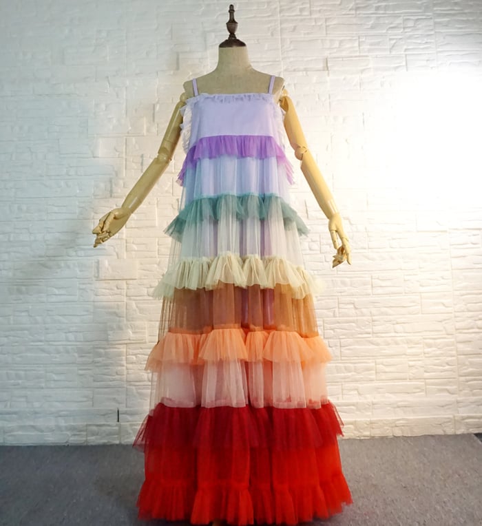Women Rainbow Tutu Party Dress Handmade Plus Size Rainbow Dress Loose Fitting Floor Length Rainbow Holiday Outfit