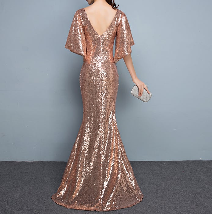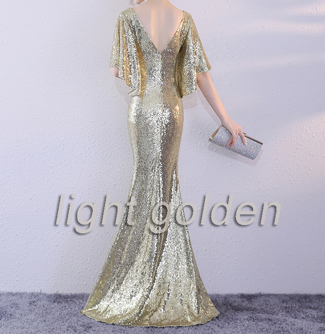 This is absolutely amazing sparkle sequin dress. A vintage inspired sequin Dress for Party / Cocktail / Party / Evening and Wedding! This elegant maxi wedding dress is featured with high quality sequin material, fitted design with comfortable lining. This dress featured with bat sleeves design and fitted cutting.