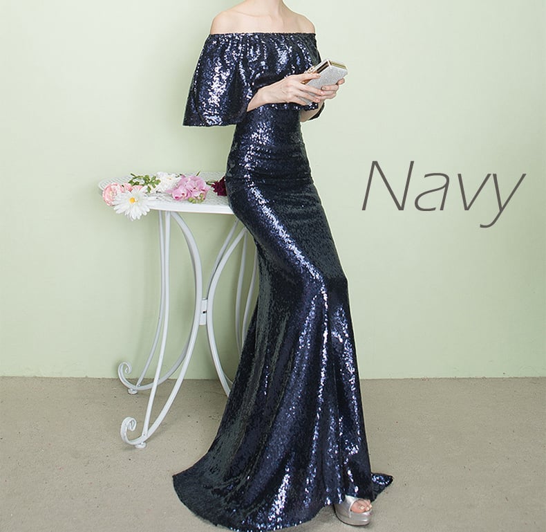GOLD SEQUIN DRESS/ Mermaid Sequin Dress/ Plus Size Sequin Dresses / OFF SHOULDER Maxi Dresses / SEQUIN DRESS BLACK