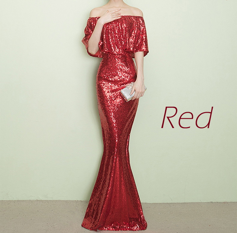 Off Shoulder Maxi Sequin Dresses, Gold Sequin Dresses, Mermaid Dress,Wedding Bridesmaid Maxi Gold Dresses, Custom Plus Size