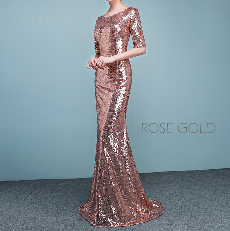 Rose-Gold Maxi Sequin Dresses,2022 Sequin Prom Dress, Custom Plus Size, Wedding Bridesmaid Dress