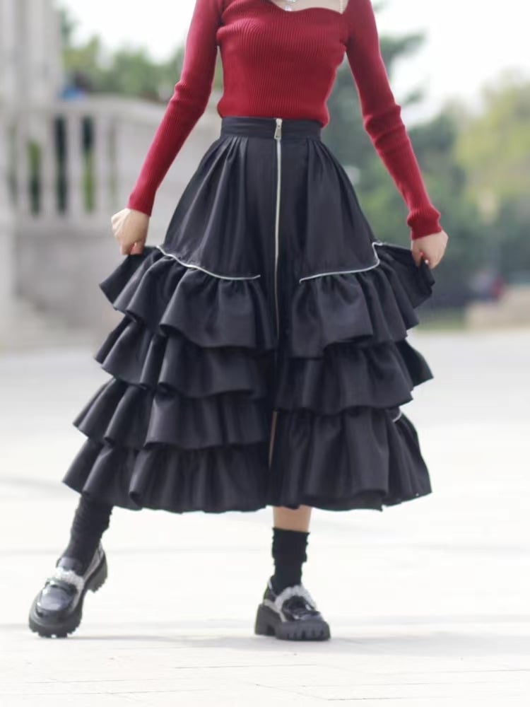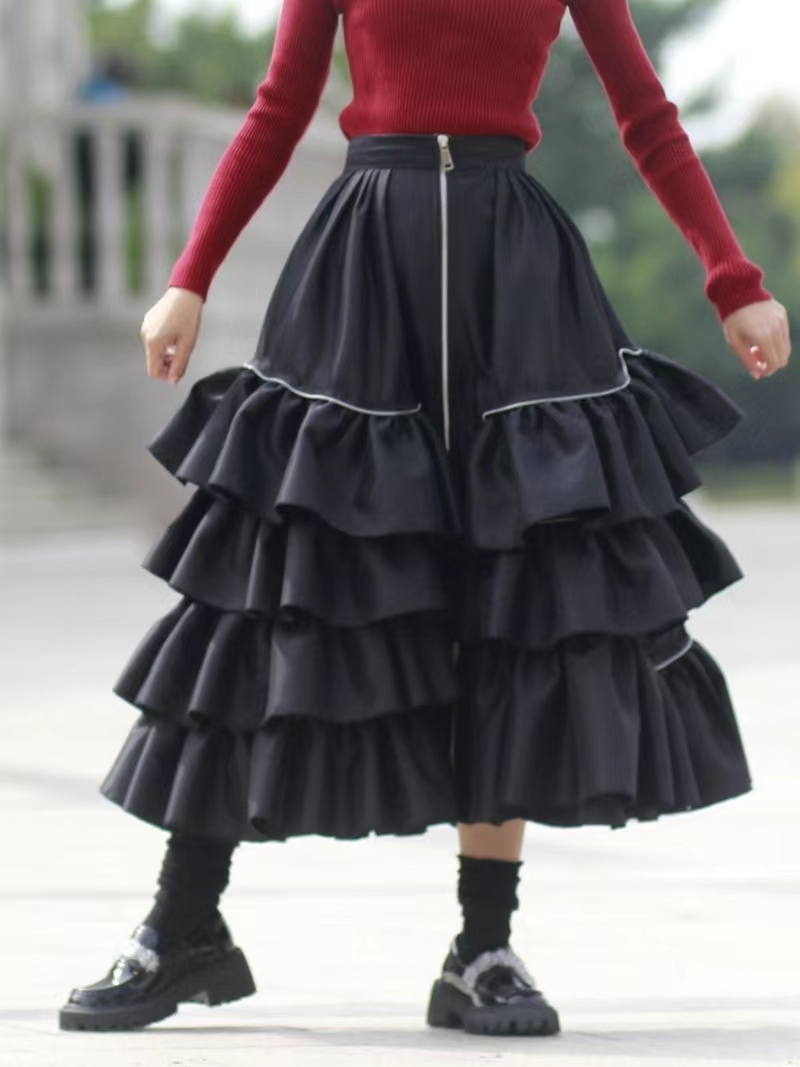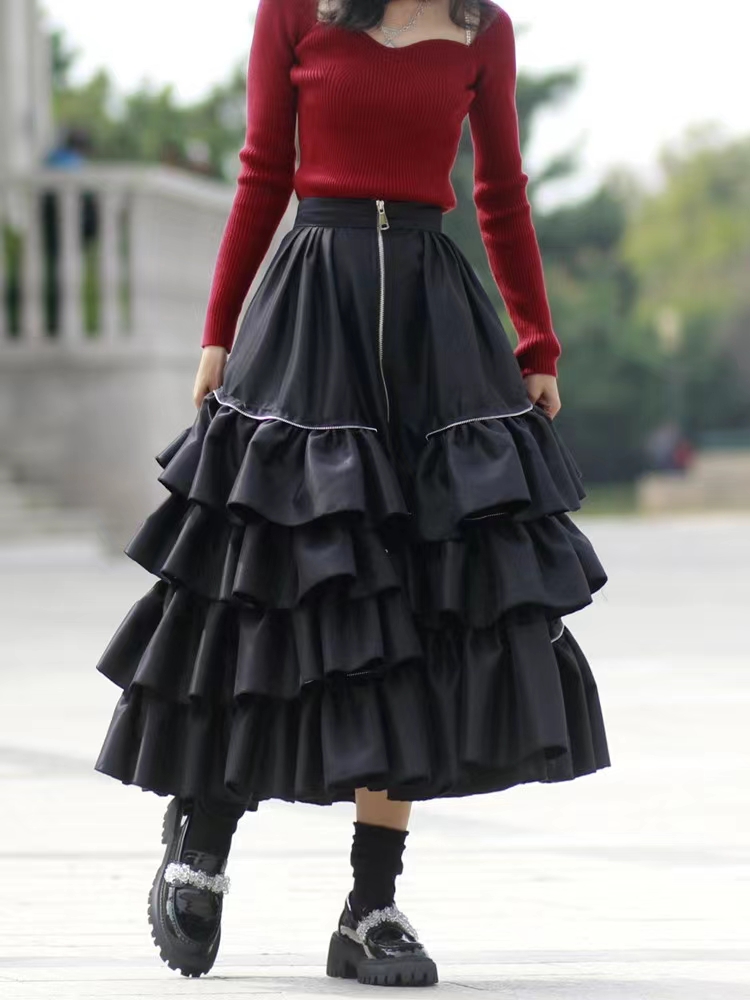 BLACK TAFFETA SKIRT BLACK Party Skirt Outfit with Pockets Black Satin Polyester Circle SKIRT, BLACK FORMAL SKIRT, Black Polyester Pleated Party Skirt Women Custom