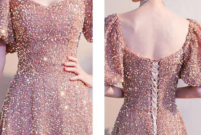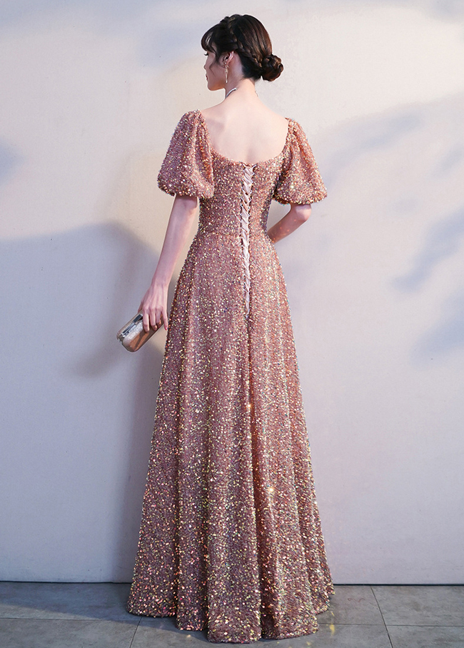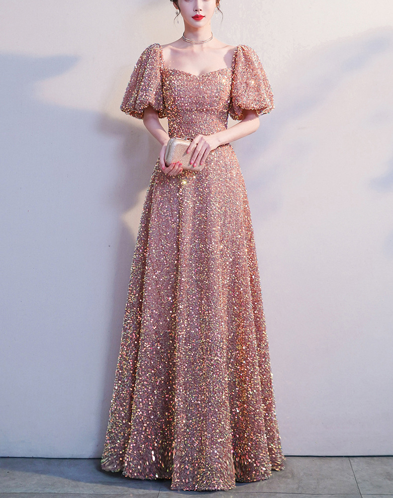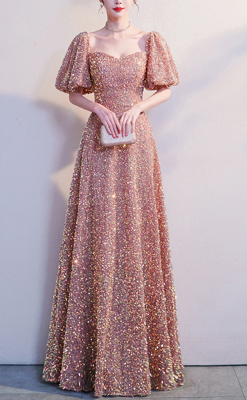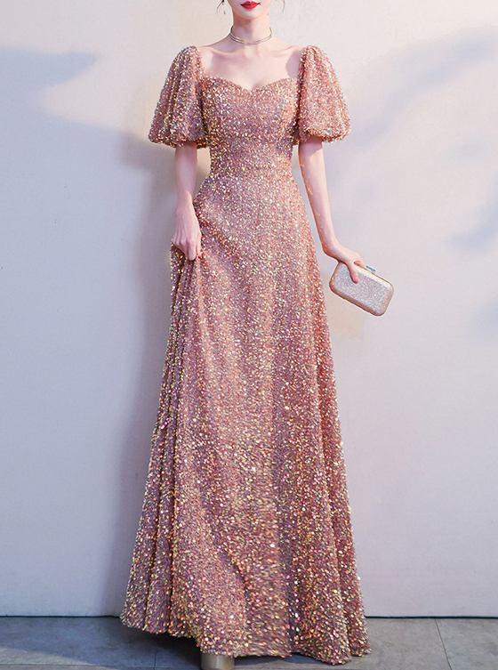 Blush Maxi Sequin Dresses Empired Style Full Sequined Wedding Party Dress Ball Gowns Custom Any Size