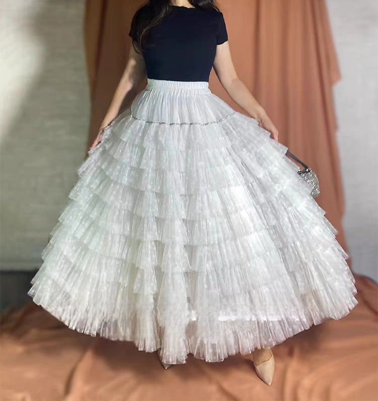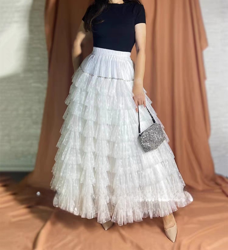 Women White Layered Tulle Maxi Skirt Gowns Wedding Bridal White Tulle Skirt Outfit High Waisted Tiered Tulle Skirt Custom Plus Size, Unique design, don't miss it!