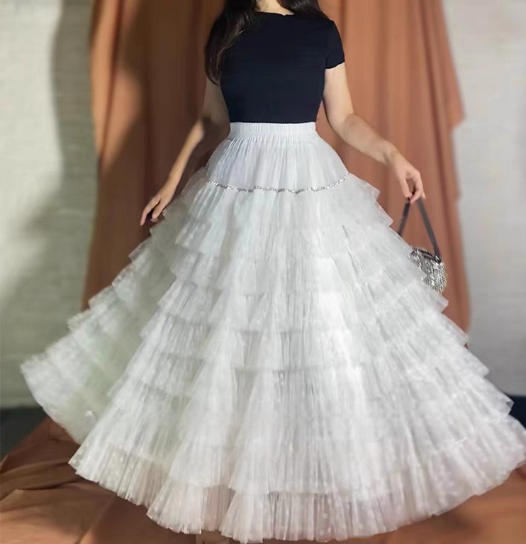 White Layered Tulle Maxi Skirt Gowns Wedding Party White Tulle Skirt Holiday Outfit High Waisted Tiered Tulle Skirt Plus Size