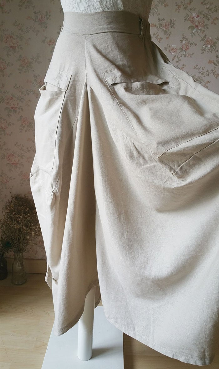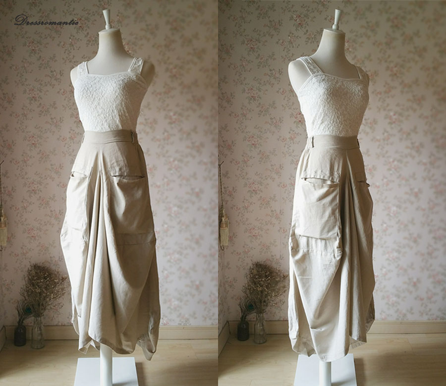 Summer Beige Linen Skirt Long Skirt Women Maxi Skirt Asymmetrical Skirt Loose Linen Beige Skirt Big pockets Casual Clothing