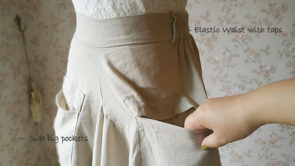 * Linen Cotton Fabric with side pockets, fit for four seasons