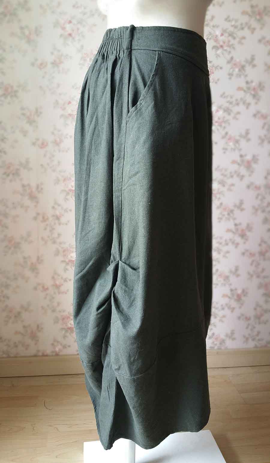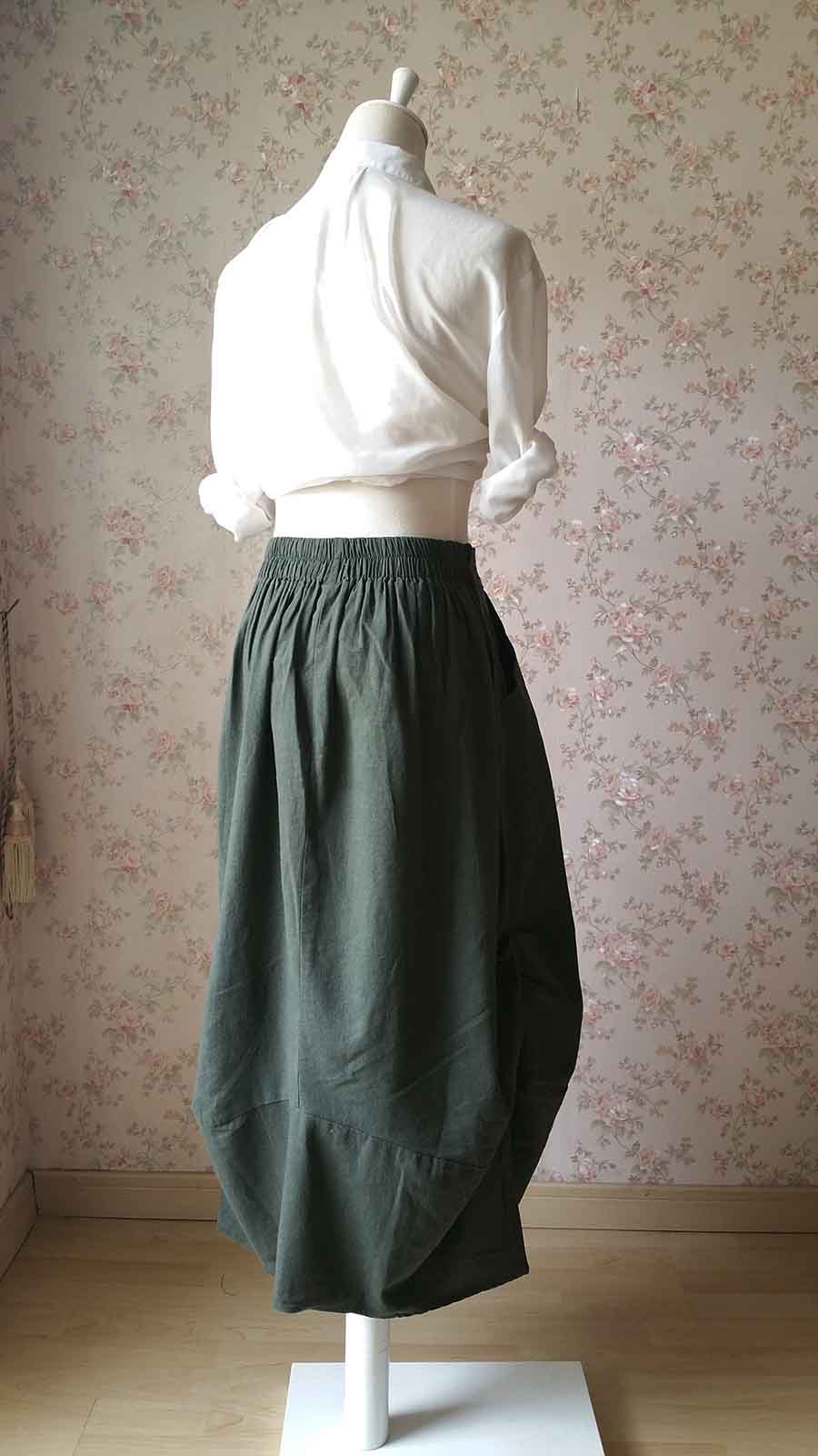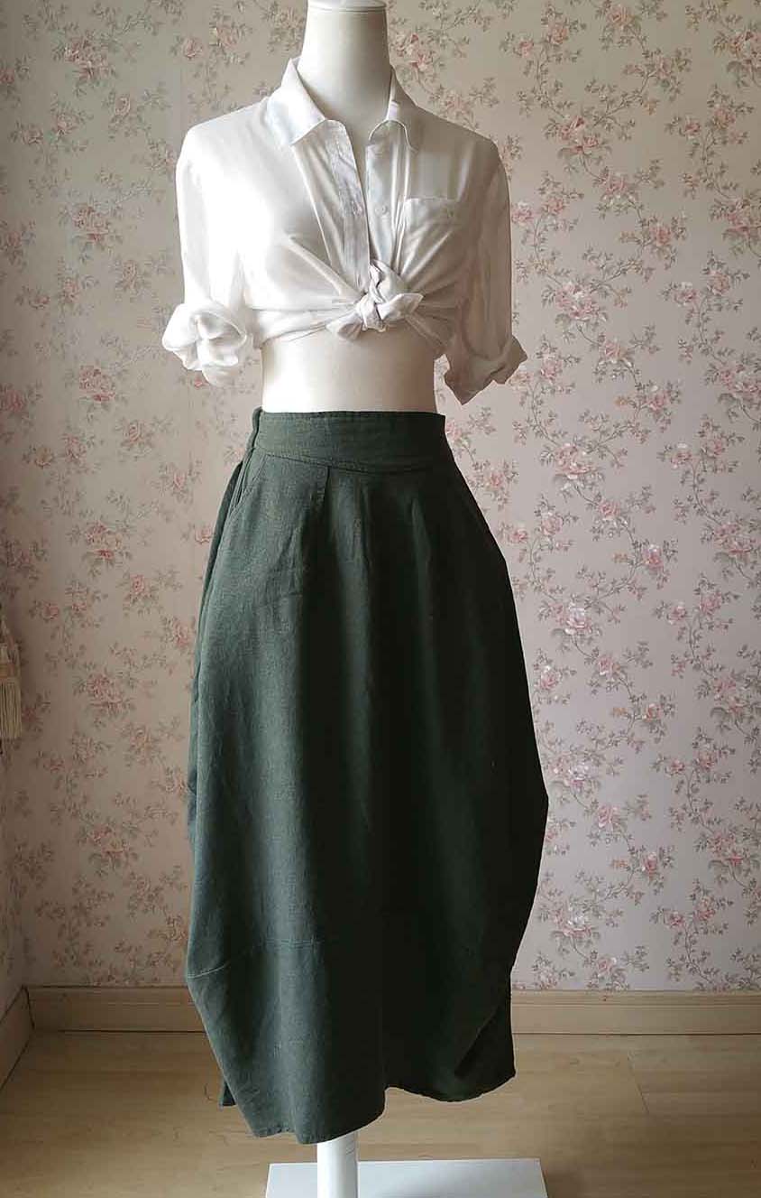 Dark Green Long Linen Skirt Women Loose Cozy Skirt Linen Asymmetric Skirt Autumn Boho Skirt with pockets